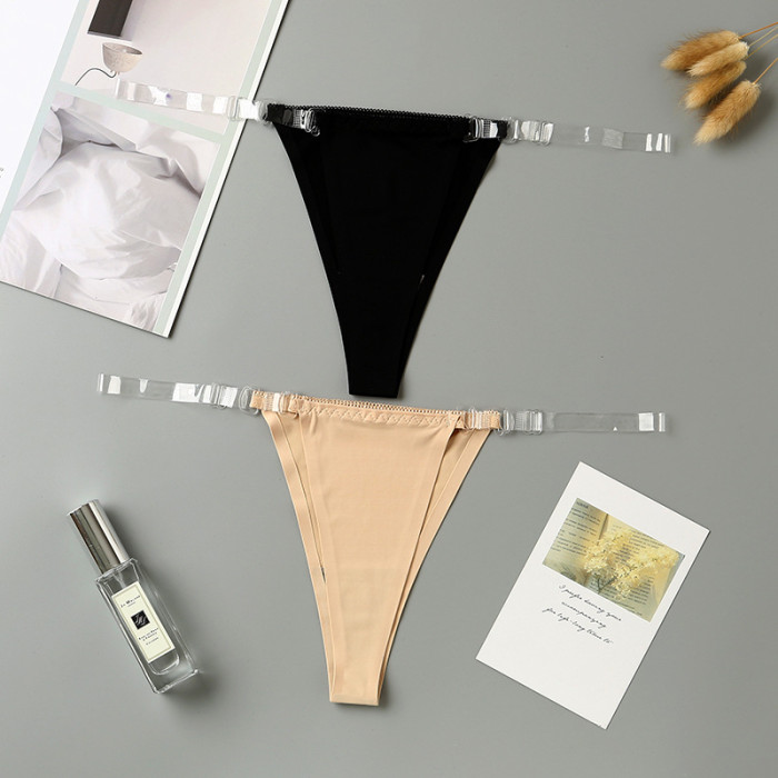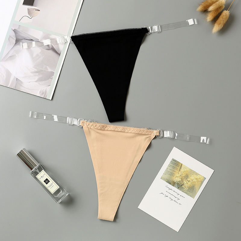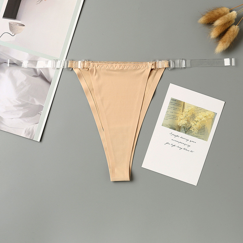 歐美風新款丁字褲女透明細帶冰絲性感特辣比基尼透氣夜用薄款網紅