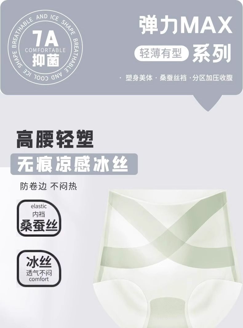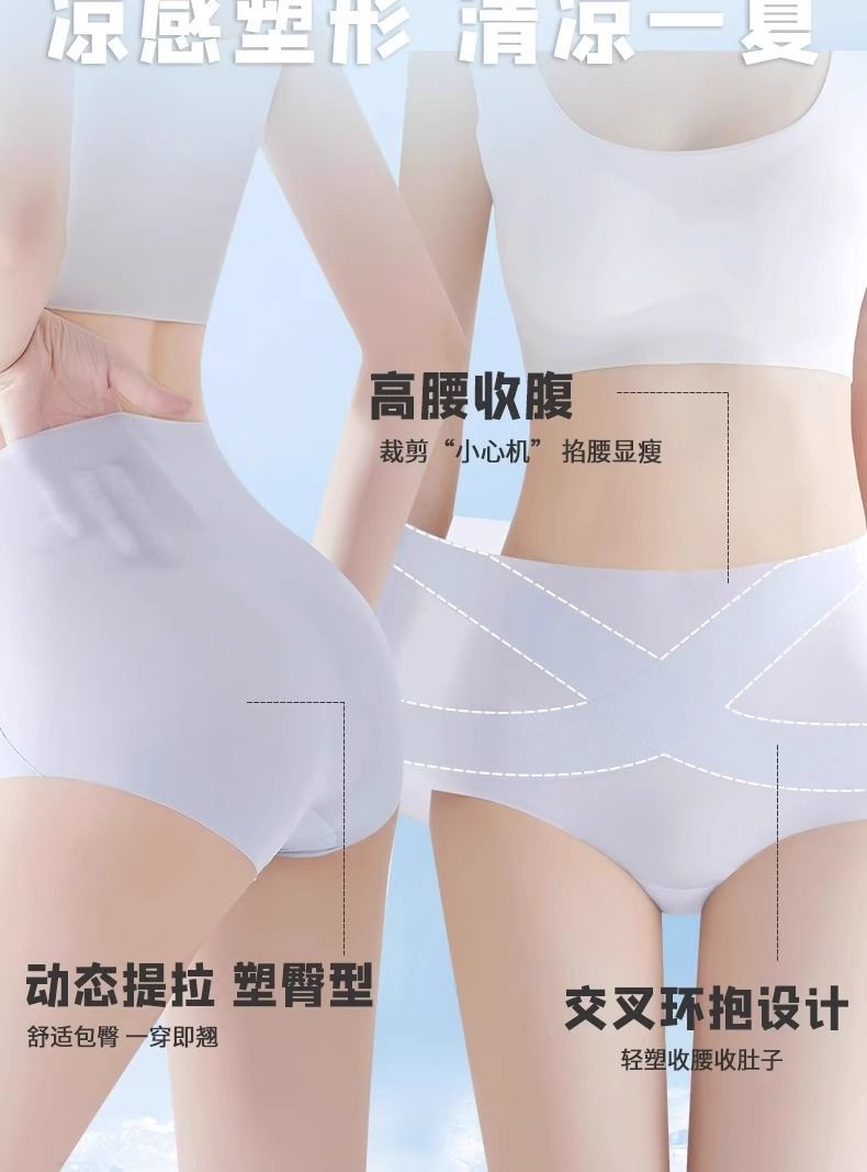 冰繃帶經典冰絲無痕內褲女夏季薄款收腹提臀塑身舒適抑菌高腰內褲