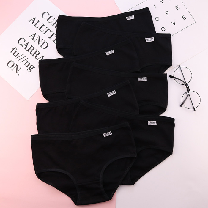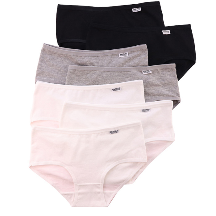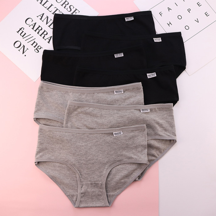 7條盒裝純黑白灰少女生內褲女全棉100%簡約舒適中低腰純棉三角褲