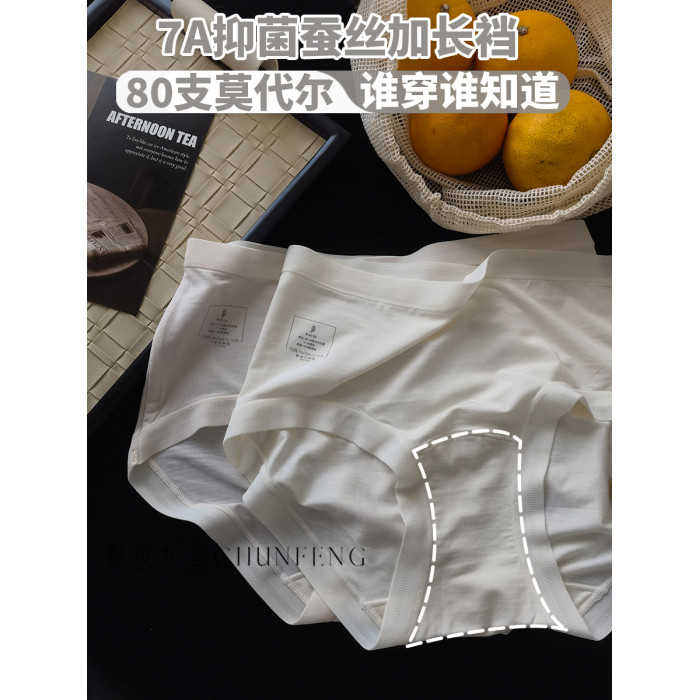 璞玉白蓮80S蘭精莫代爾7A抑菌加長蠶絲襠|六免一2025新款女內褲