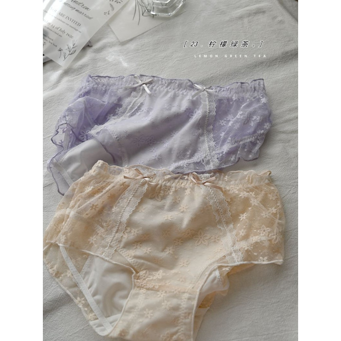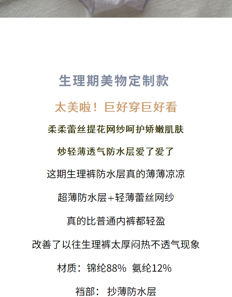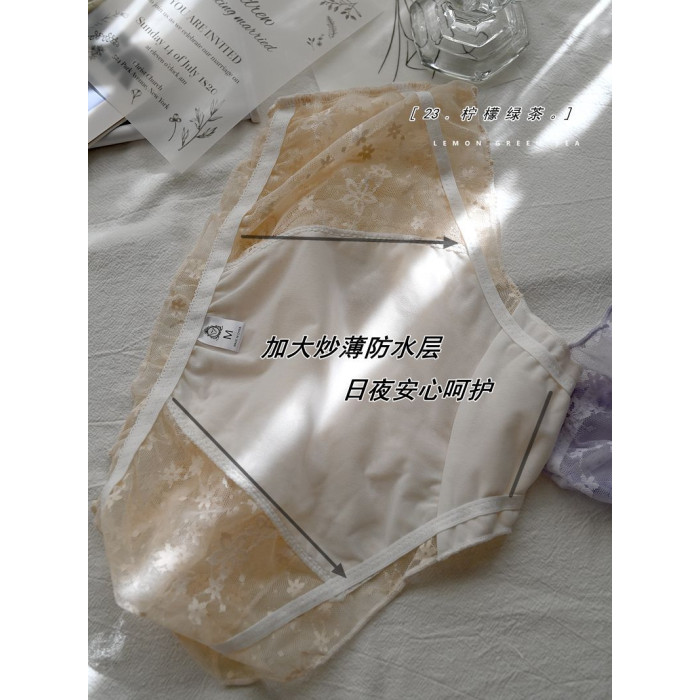 太美啦!蕾絲輕薄透氣防漏日夜生理褲日系清新姨媽褲少女中腰內褲