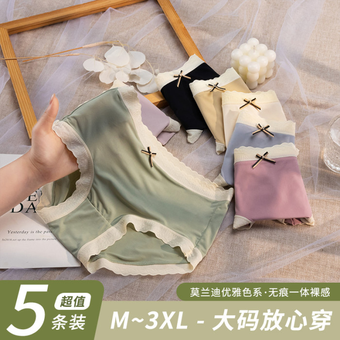 大碼內褲女無痕透氣日系少女胖mm200斤純棉襠抗菌蕾絲中腰短褲頭
