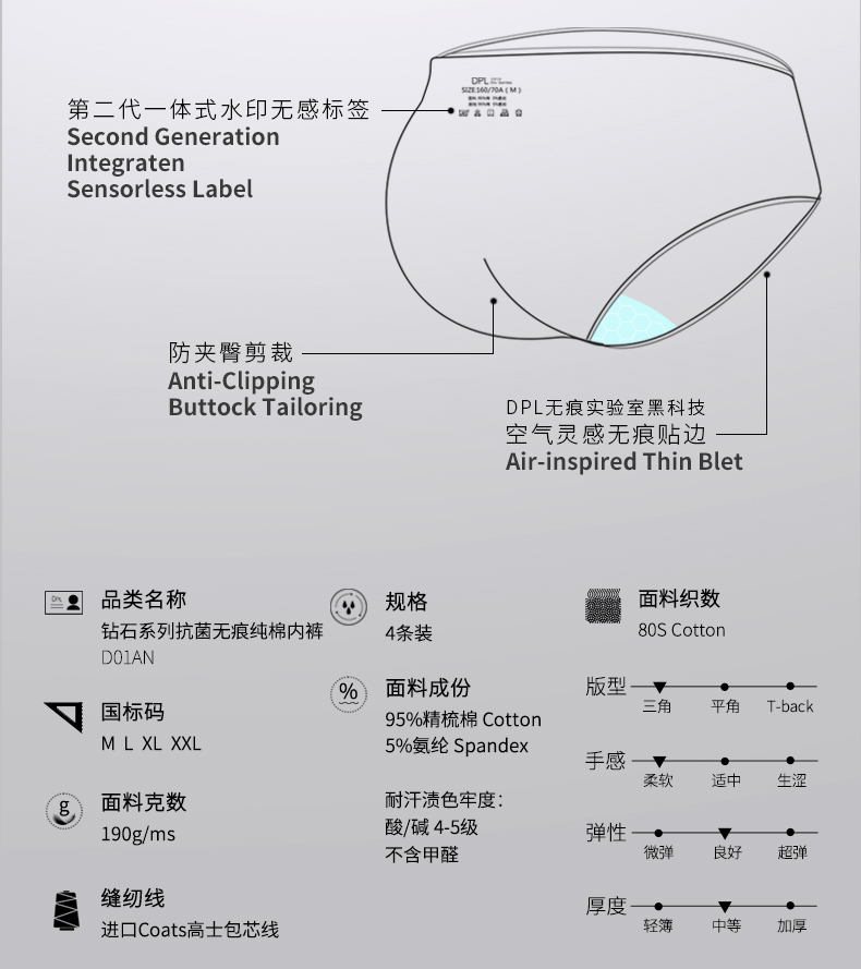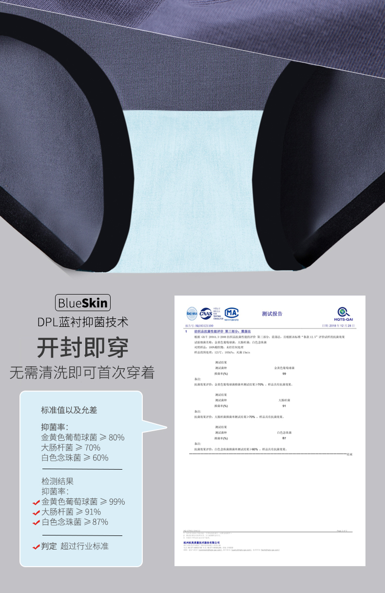 | 襠部材質成分 | 粘膠纖維(粘纖)40.2% 聚酯纖維36.3% 棉17% 聚氨酯彈性纖維(氨綸)6.5% |