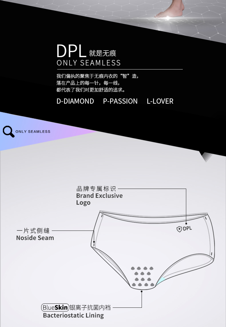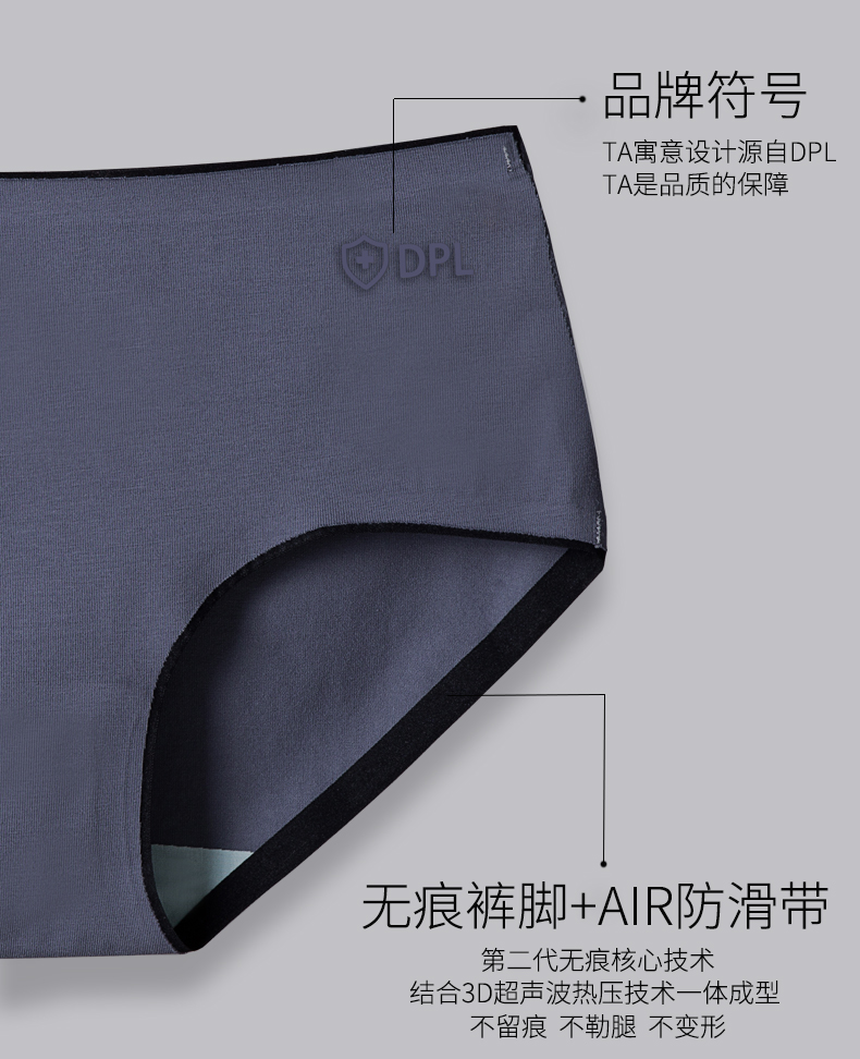 DPL藍襯抗菌純棉無痕女士內褲女全棉少女中腰性感大碼三角褲黑色