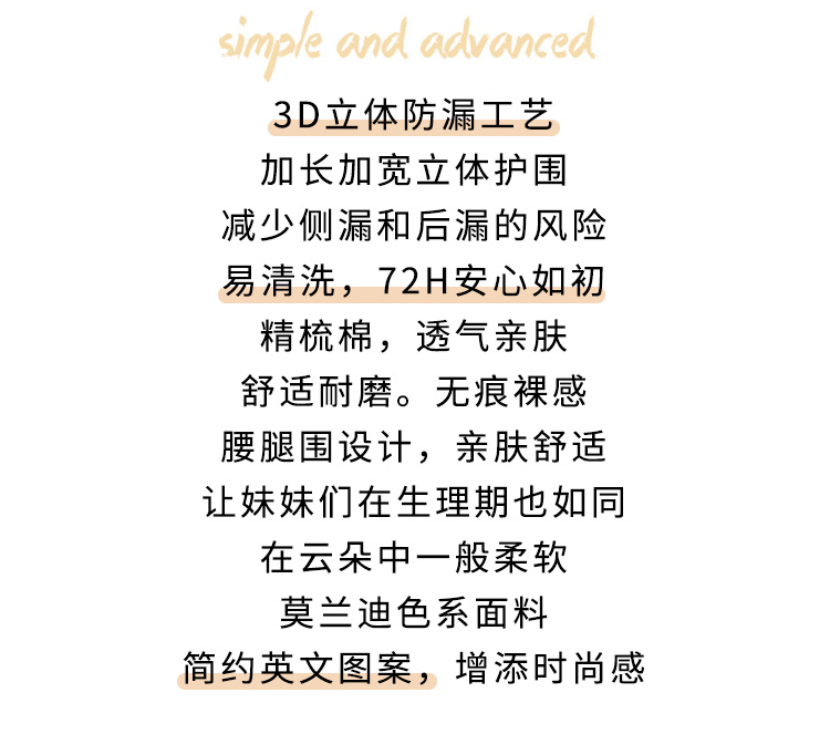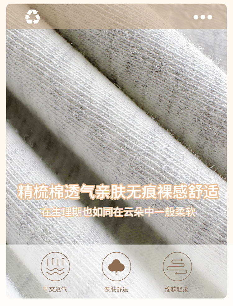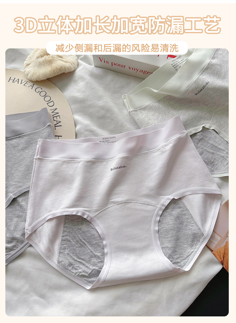 裸感生理褲加長加寬防側漏純棉內褲女無痕精梳棉中腰包臀三角褲