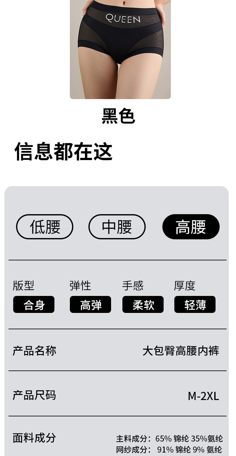 草本2025新款高腰無痕輕薄透氣unique收腹提臀網紗輕透女士平角褲