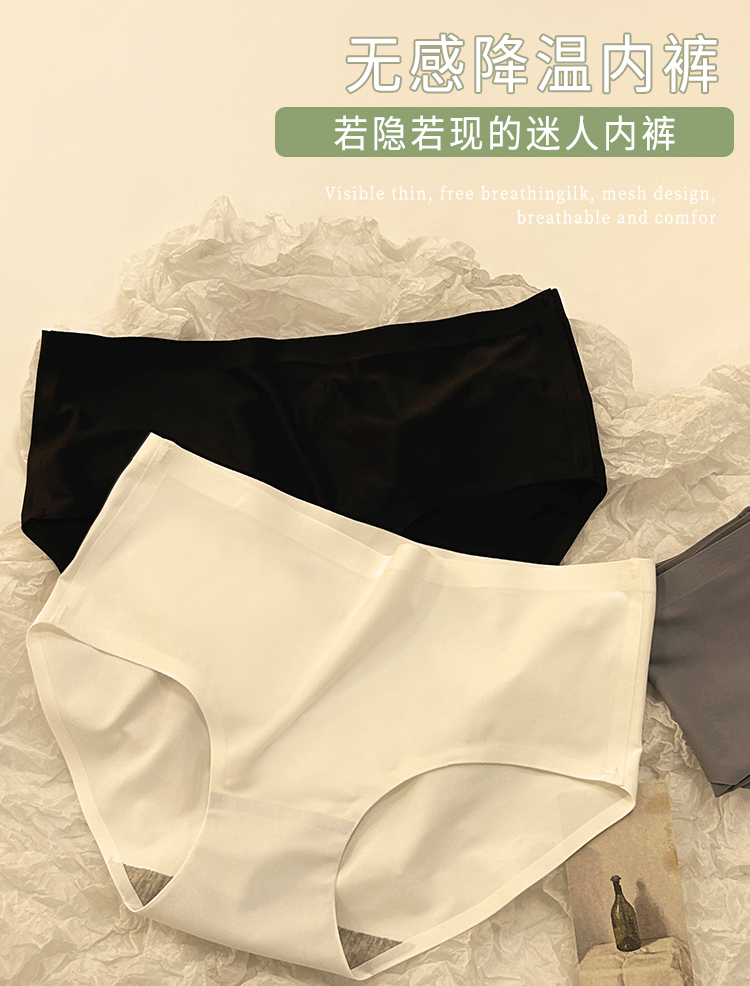 無痕冰絲內褲女士純棉全棉襠抗菌中腰少女生新款簡約夏季薄款短褲