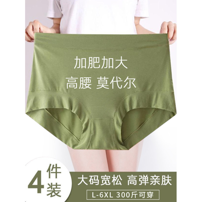 4件裝加肥加大碼薄款莫代爾300斤女士三角內褲高腰收腹胖MM200斤