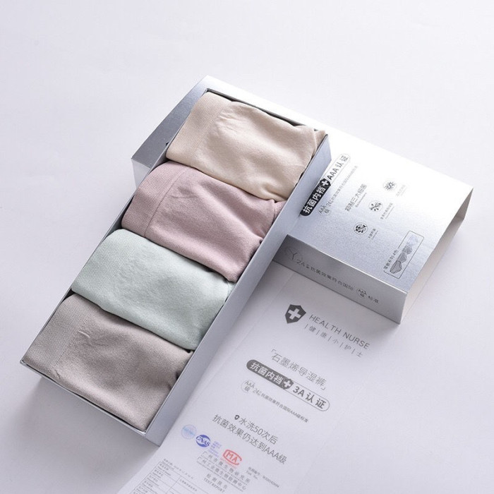 4條裝銀盒石墨烯導溼抑菌裸氨純棉檔透氣無痕少女士三角內褲
