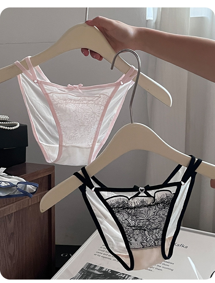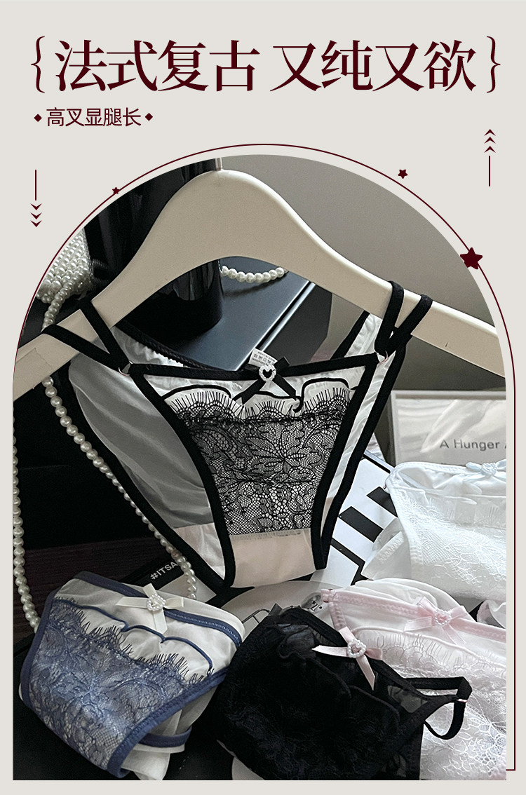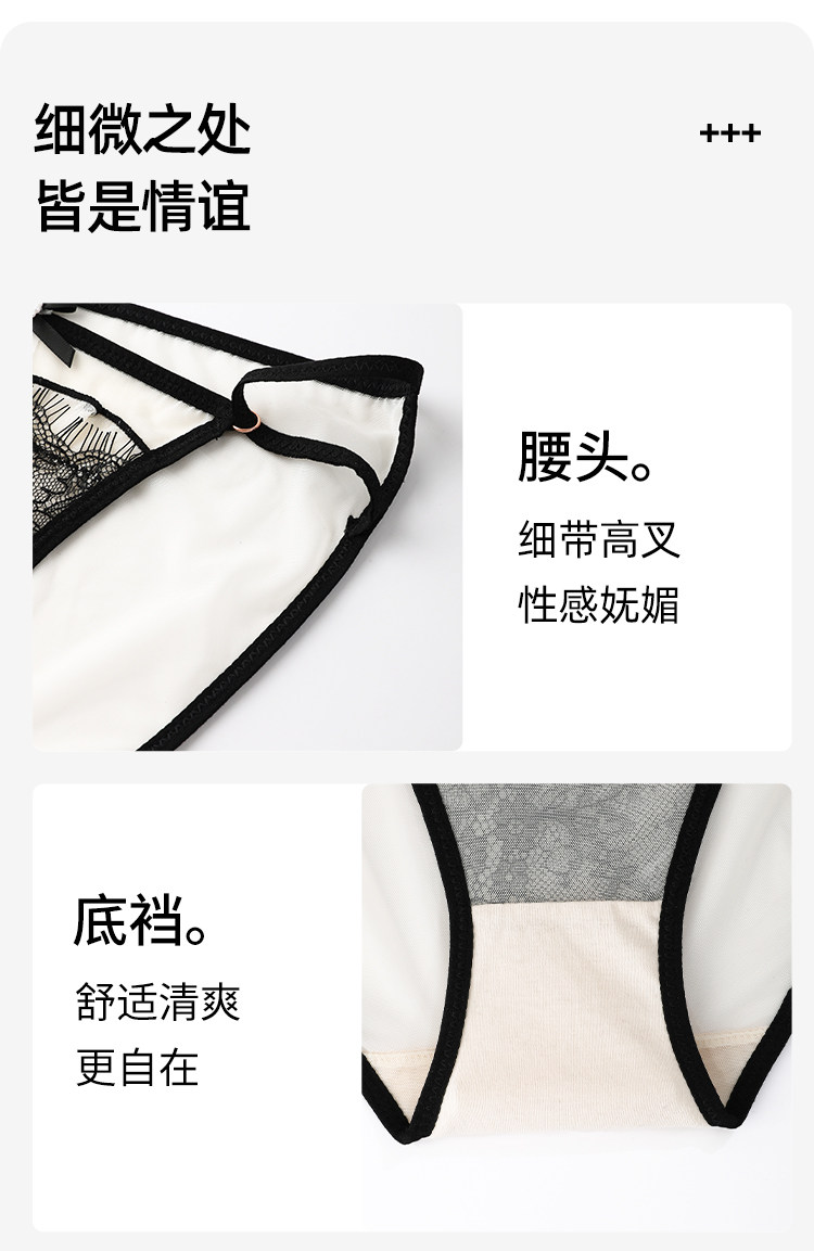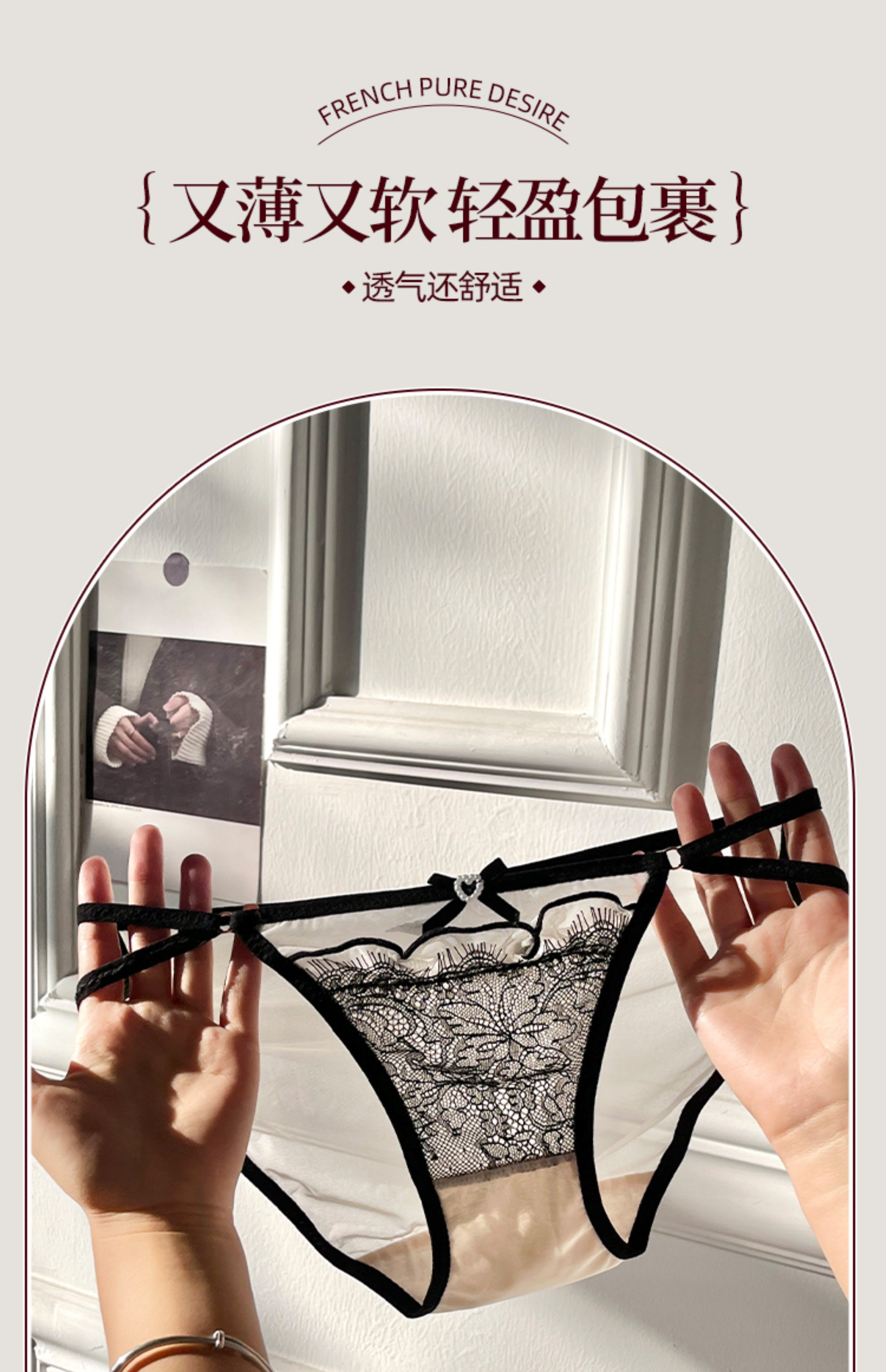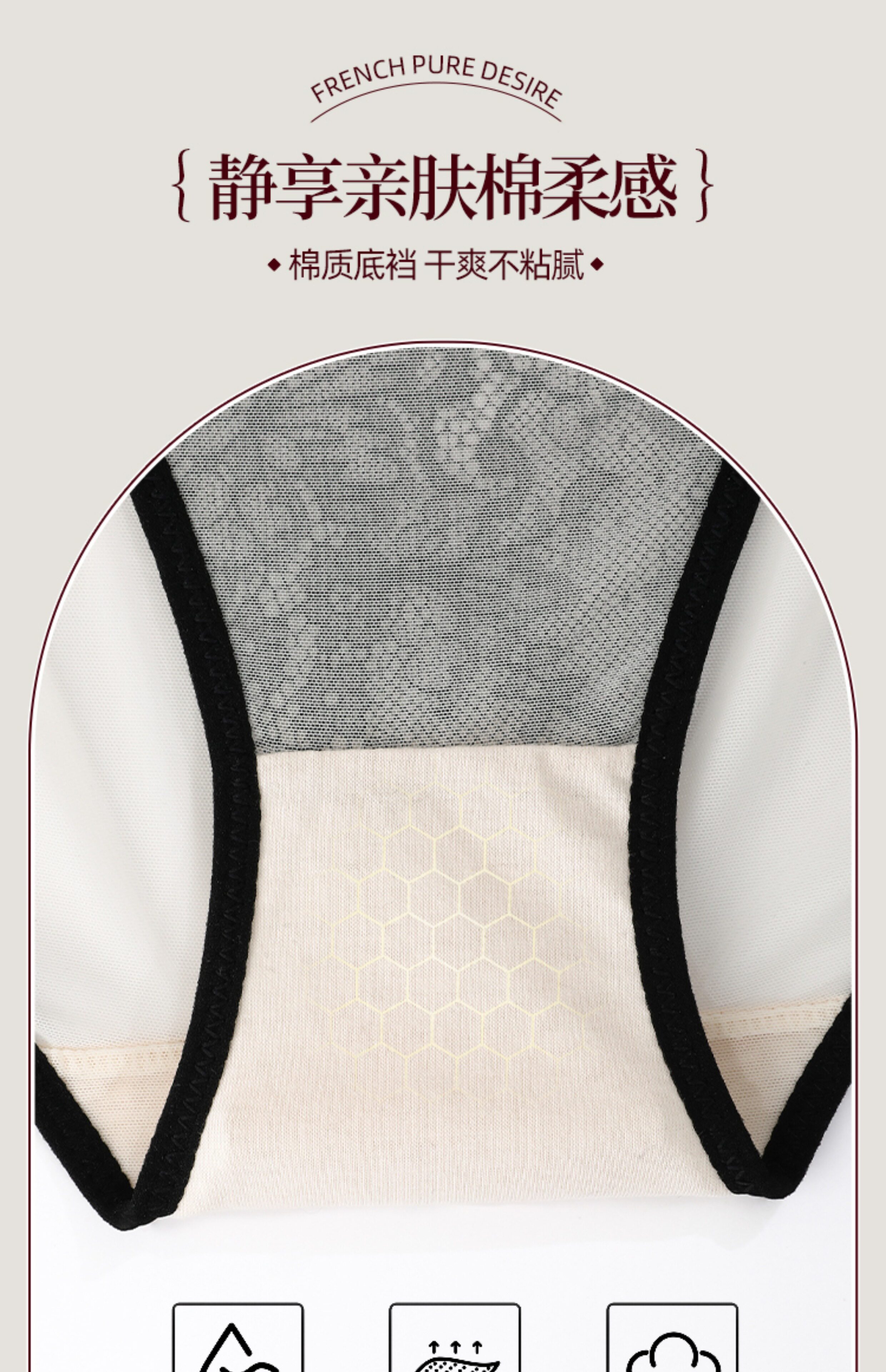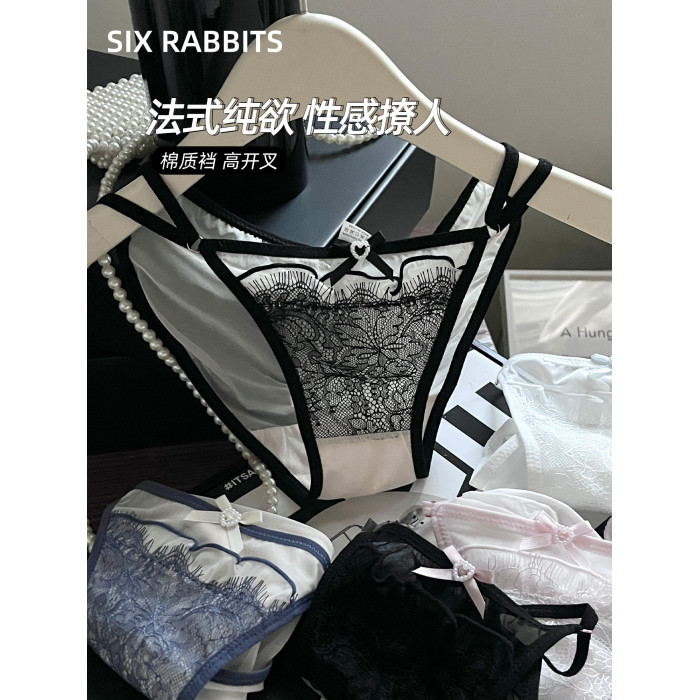 六衹兔子性感純欲內褲女純棉底襠輕薄透氣法式復古蕾絲半透三角褲