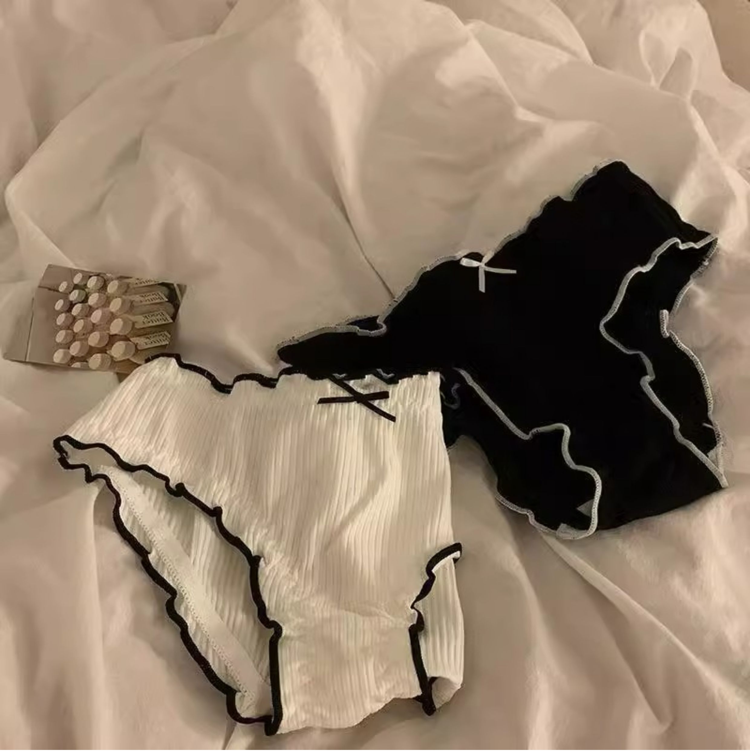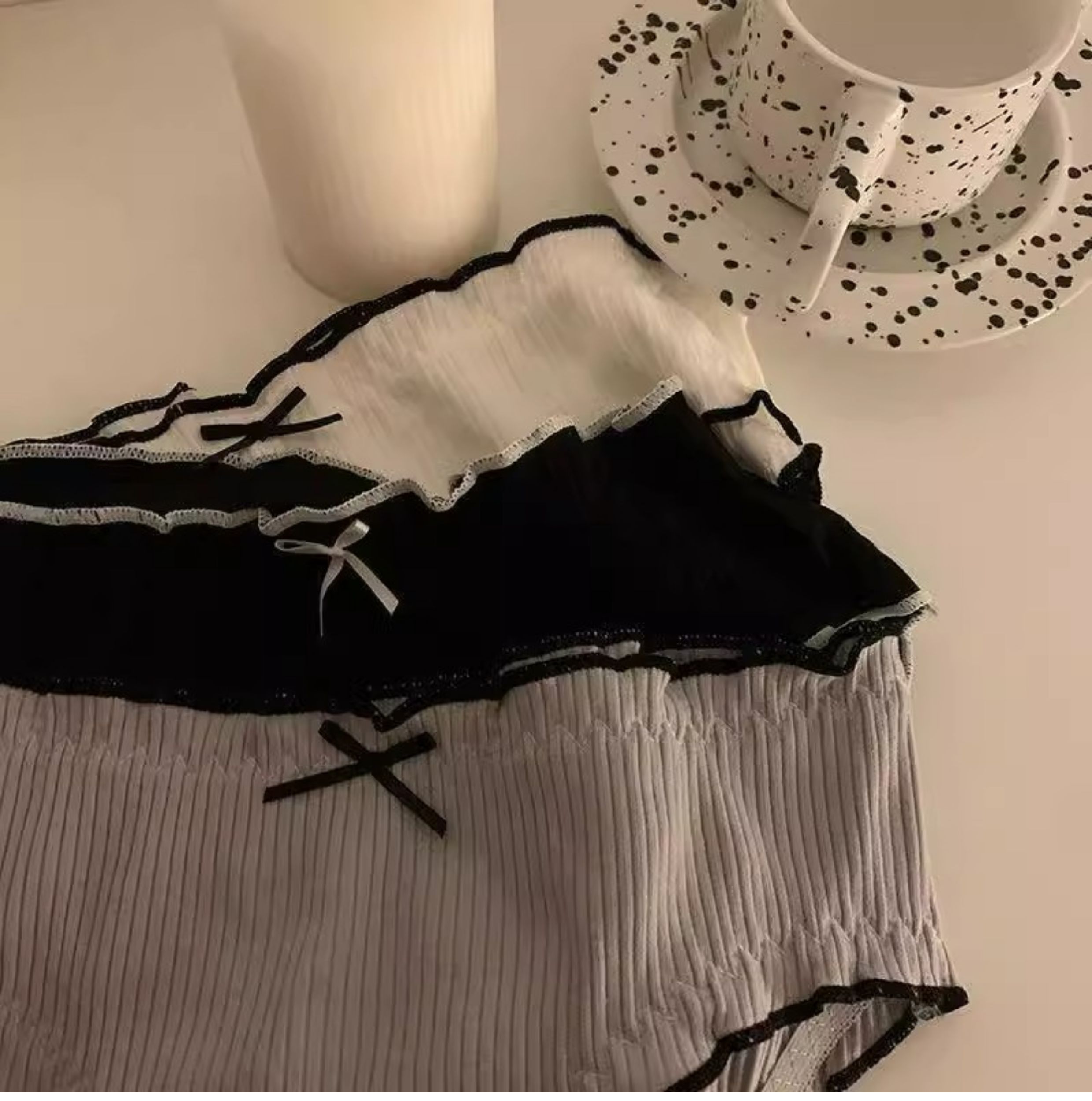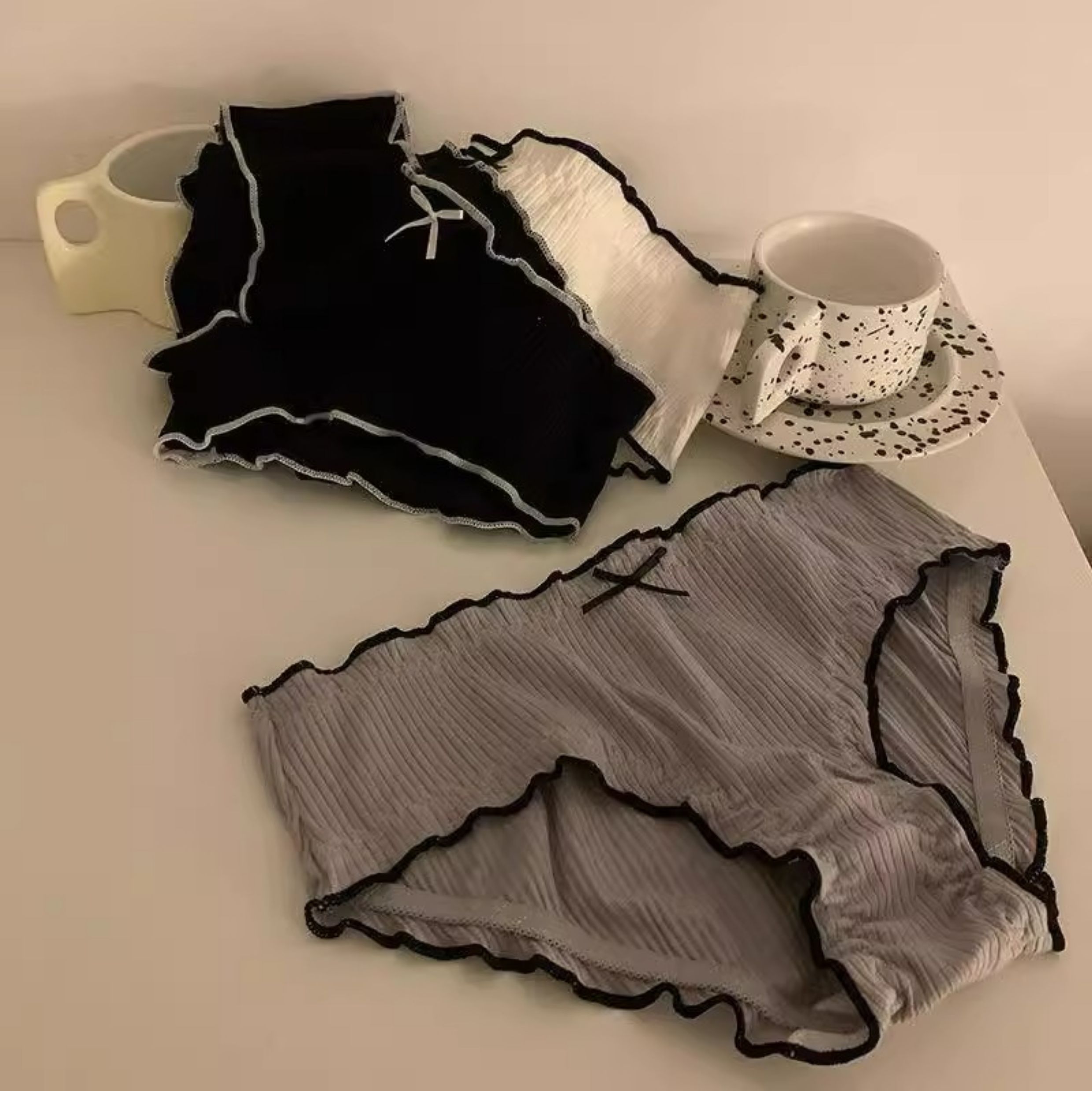 日本MUIl女士純棉全棉抑菌襠女生純欲性感新款中低腰少女黑色內褲