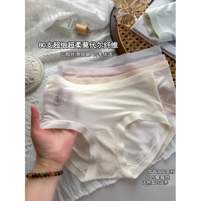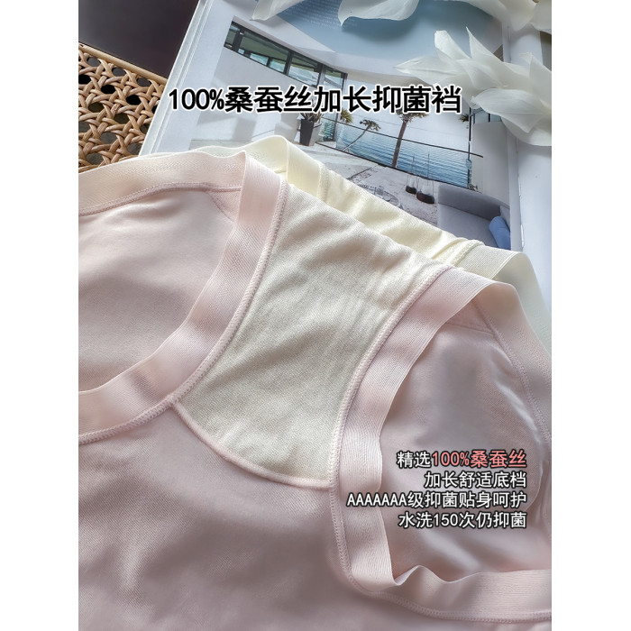 80支莫代爾內褲女生100%桑蠶絲加長襠7A抑菌襠中腰無痕2025年新款
