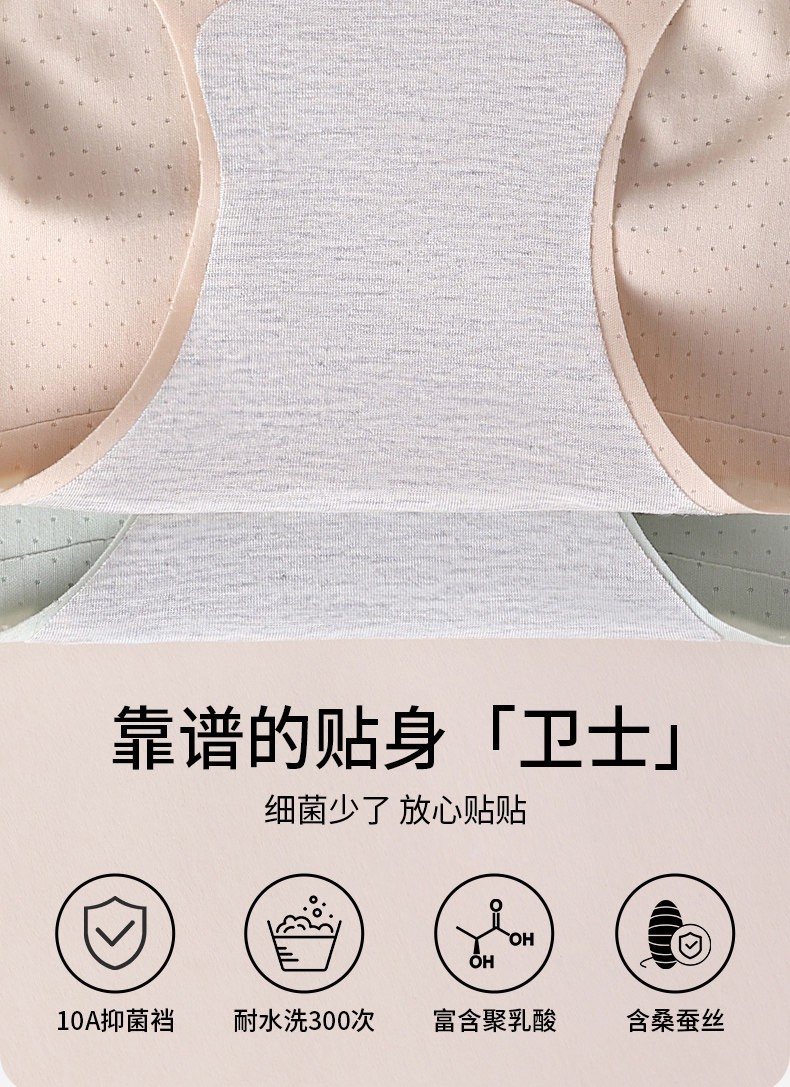 襠部材質 10A級抗菌(桑蠶絲+聚乳酸+粘纖+腈綸+氨綸)