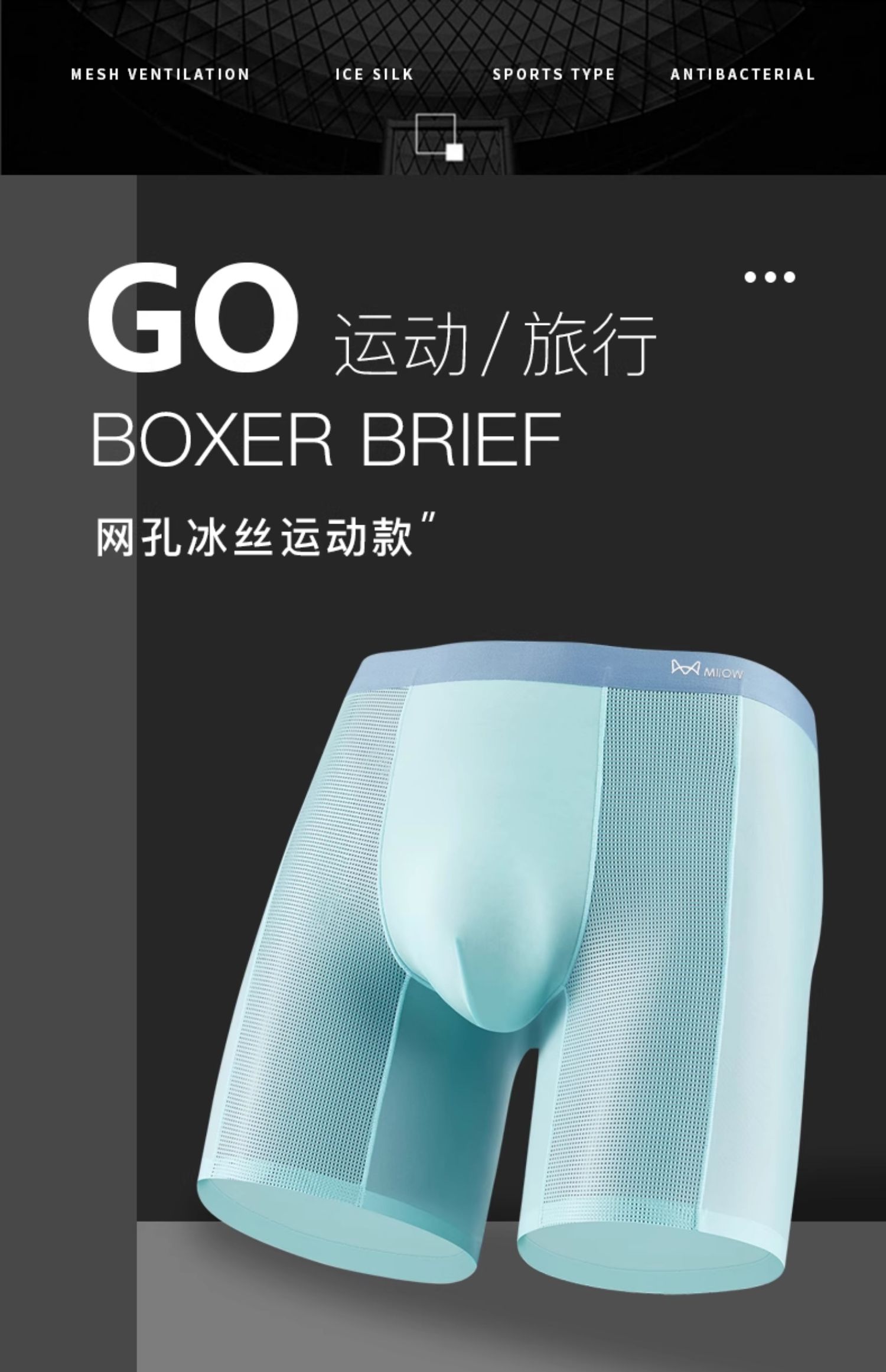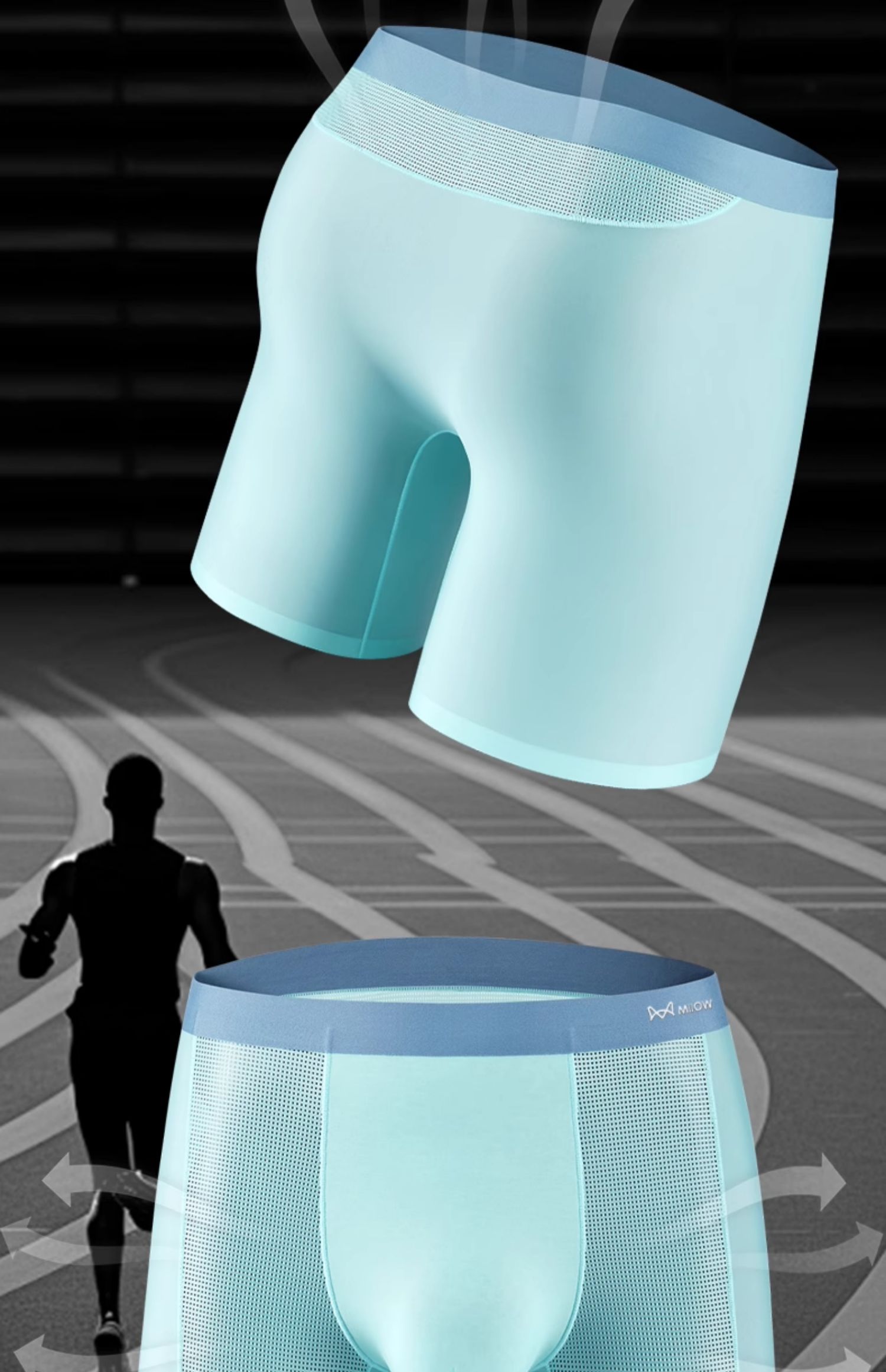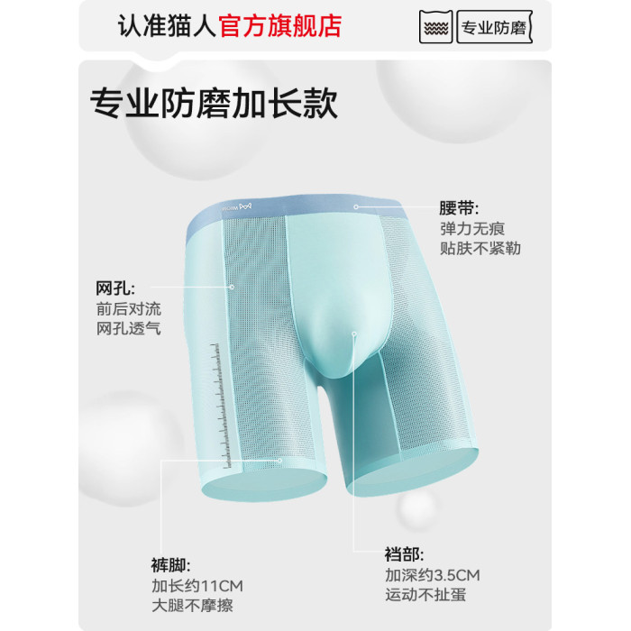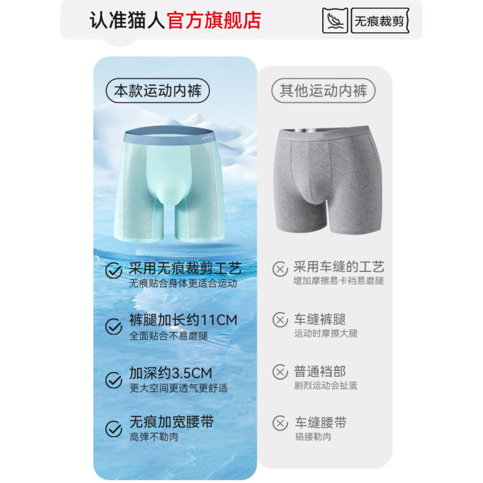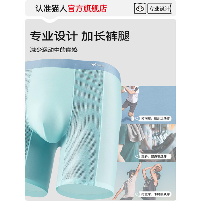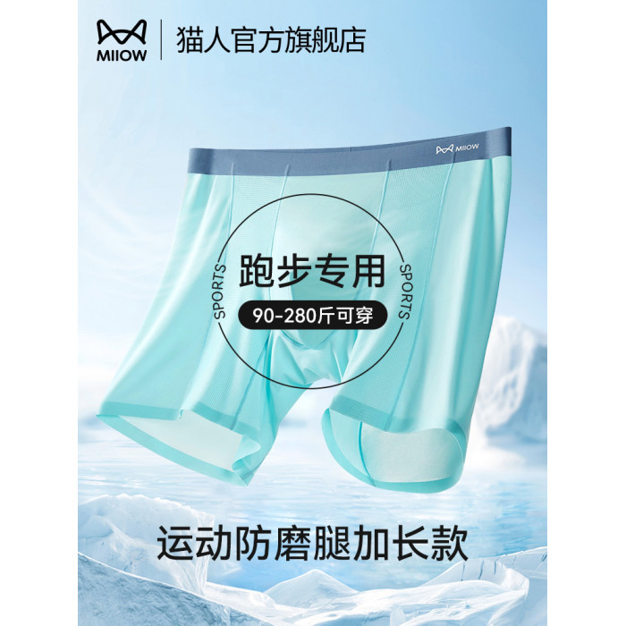 貓人跑步內褲男防磨襠加肥加大男士平角褲長款透氣運動短褲頭男款