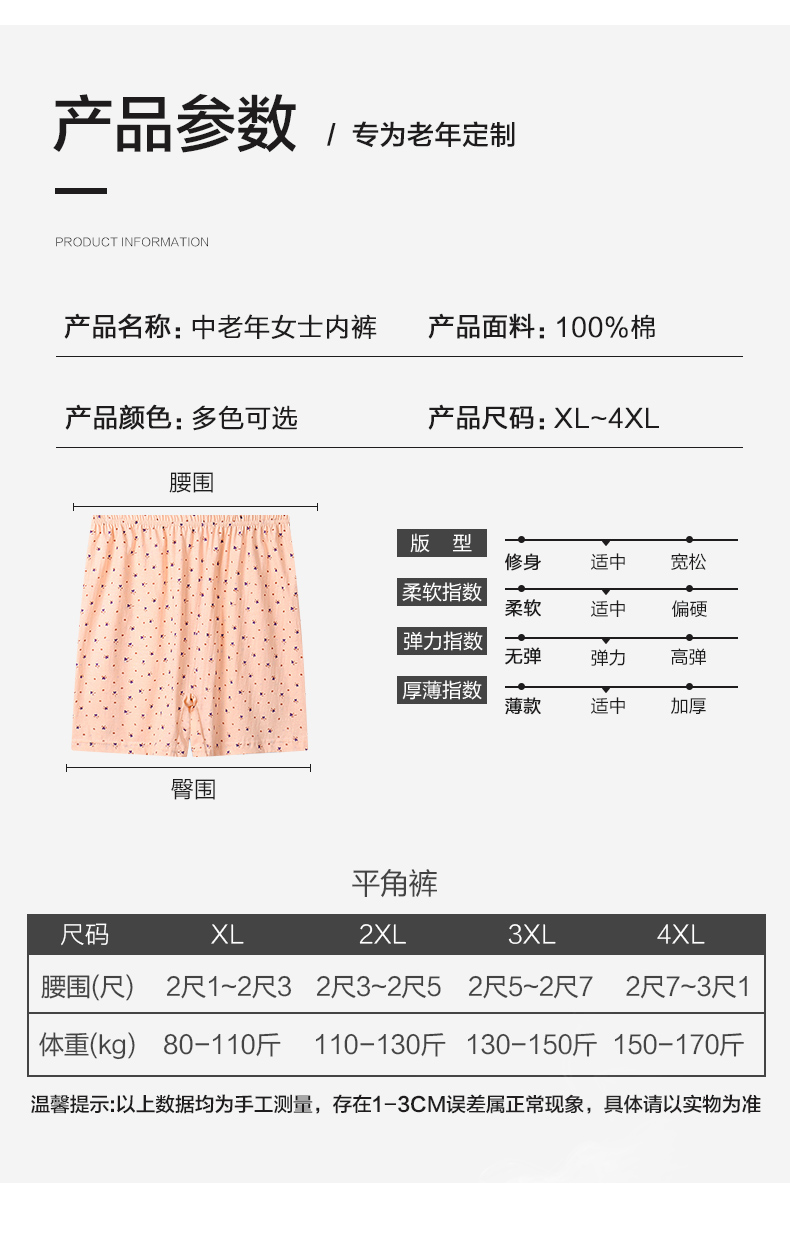 南極人媽媽內褲女士純棉平角高腰加肥加大碼中老年奶奶四角短褲頭