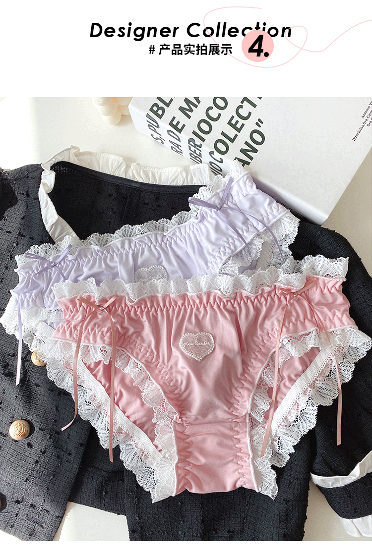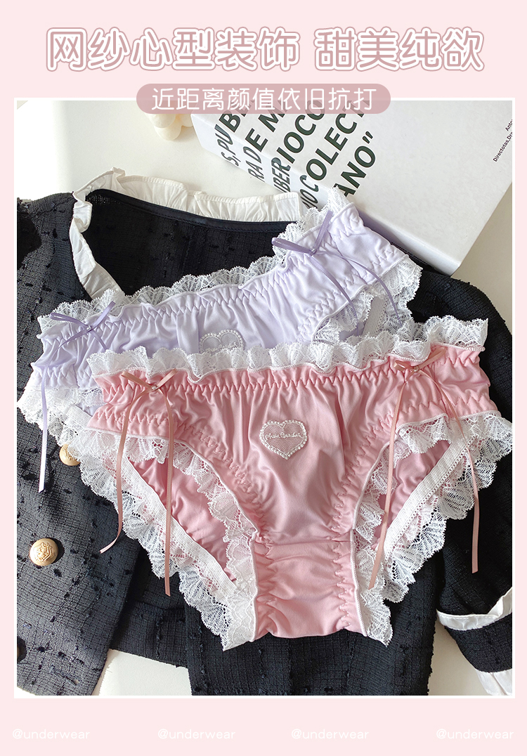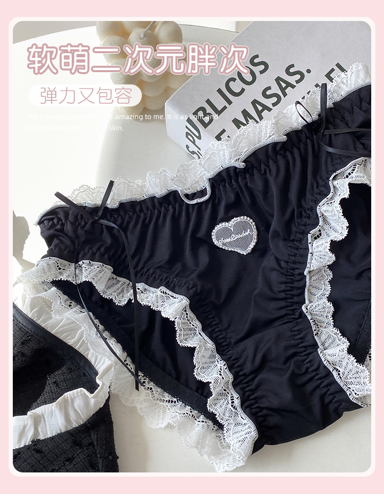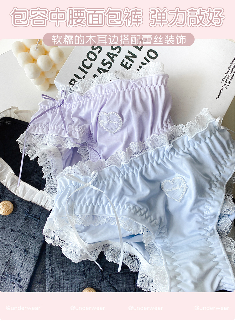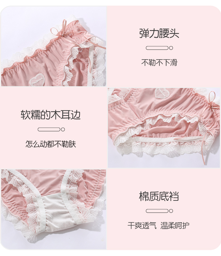 六衹兔子內褲女光滑緞面純棉底襠木耳邊短褲甜美少女風中腰三角褲