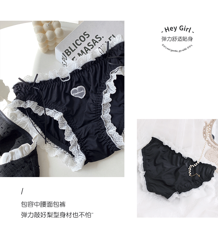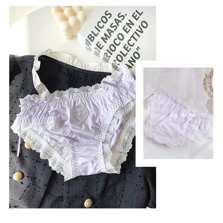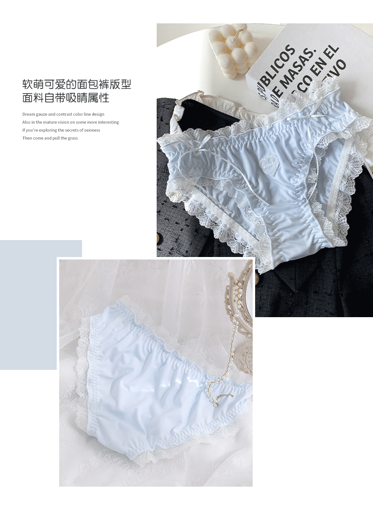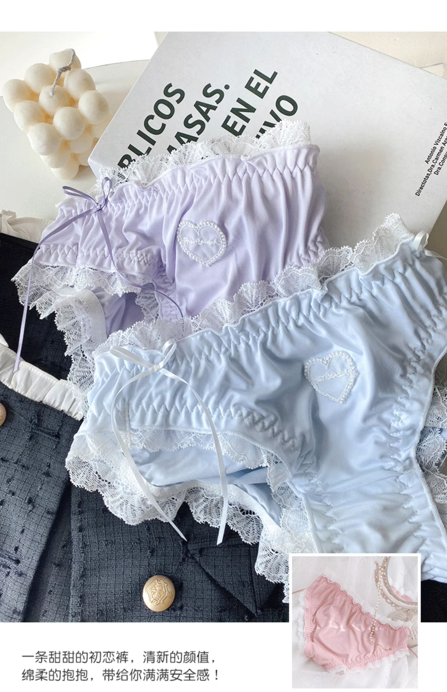 六衹兔子內褲女光滑緞面純棉底襠木耳邊短褲甜美少女風中腰三角褲