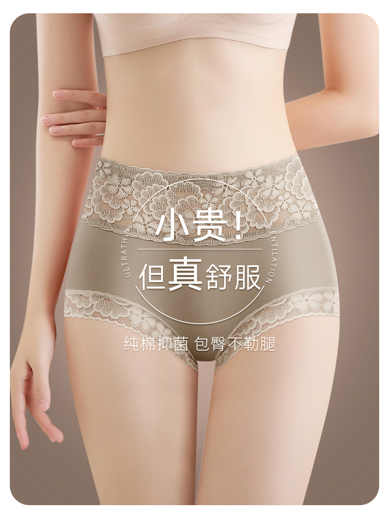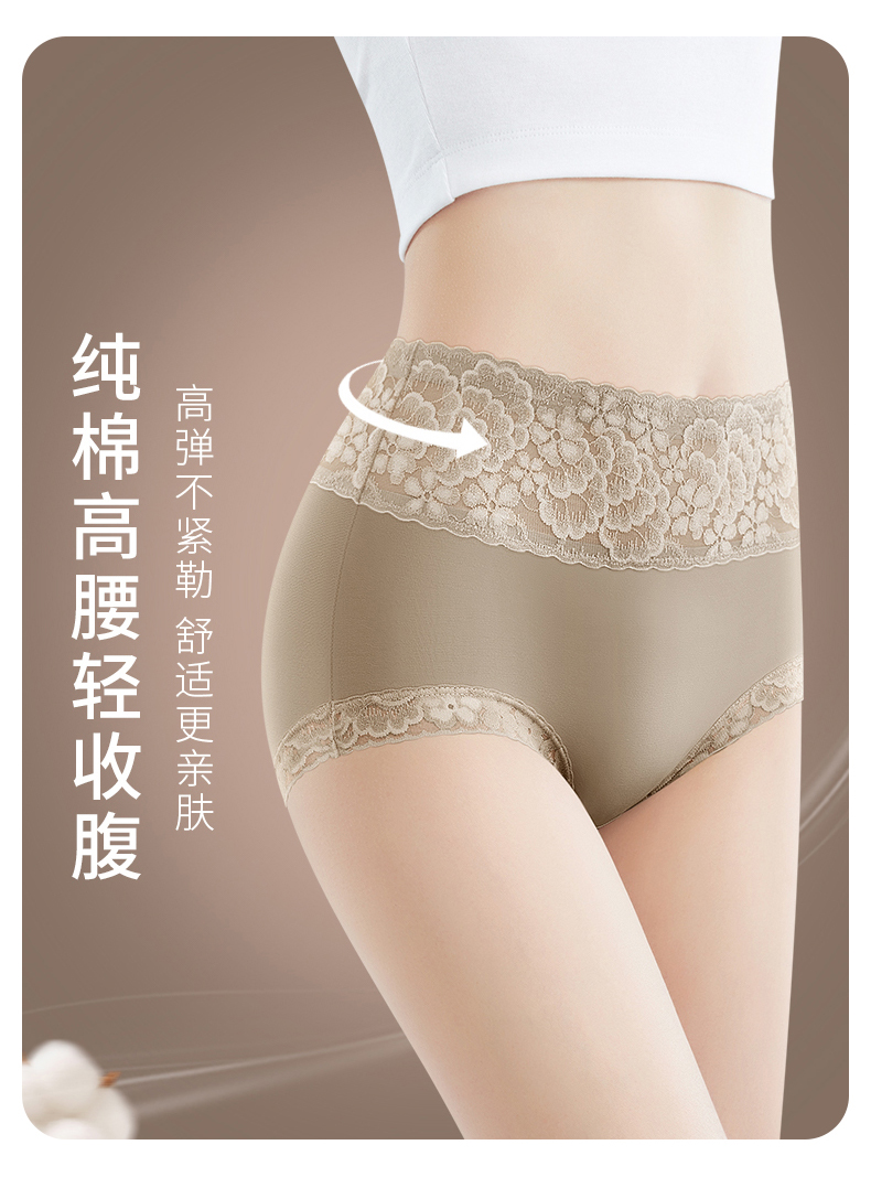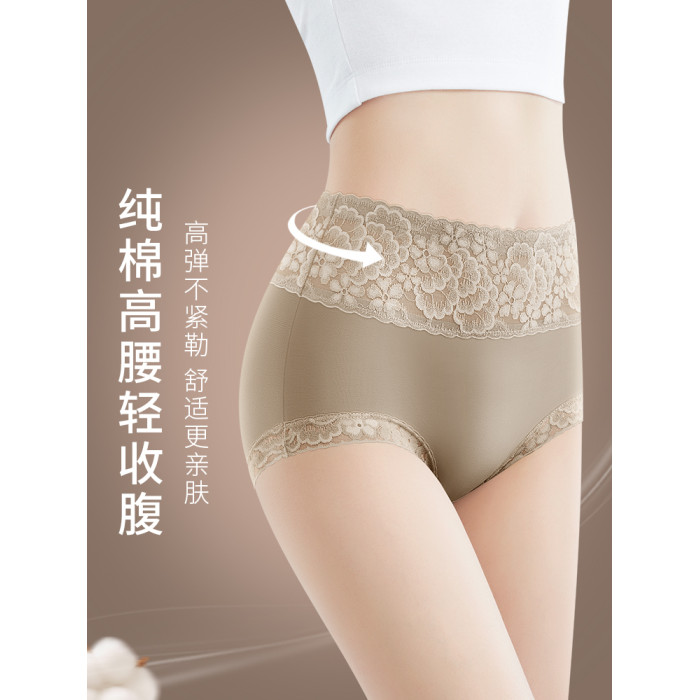 純棉內褲女高腰收腹全棉抗菌襠新款無痕薄款蕾絲透氣女式三角短褲