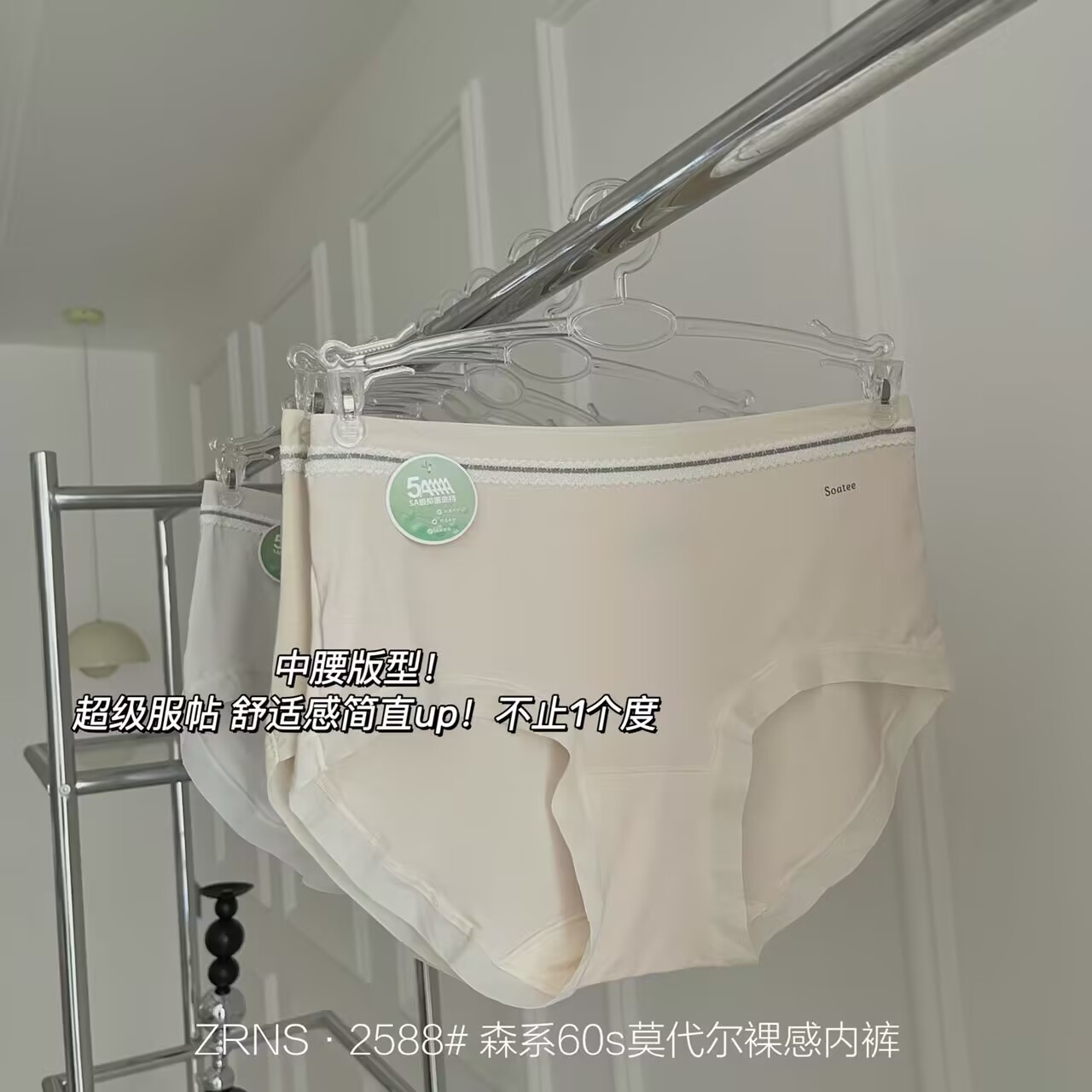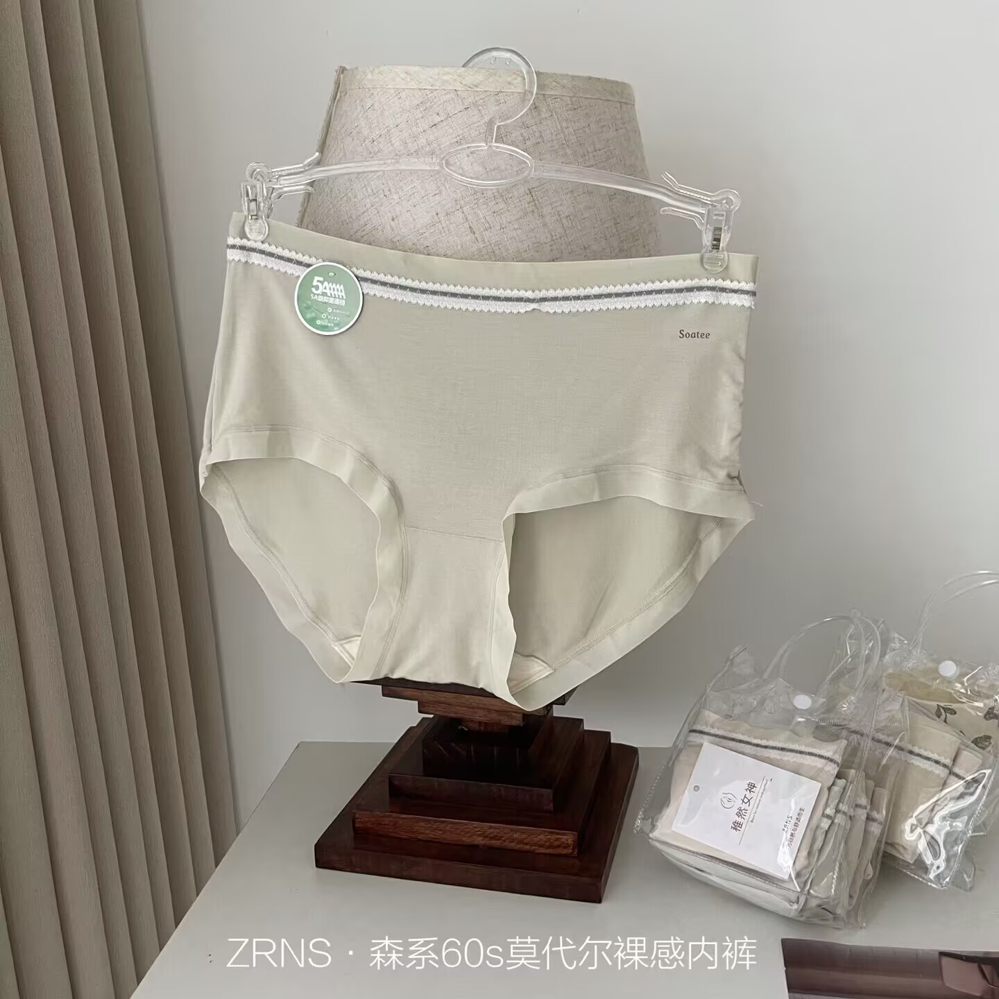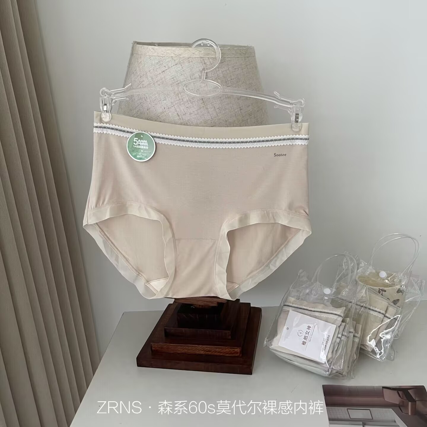 秋冬森系60S裸感莫代爾內褲女無痕中腰舒適包臀5A抗菌底檔三角褲
