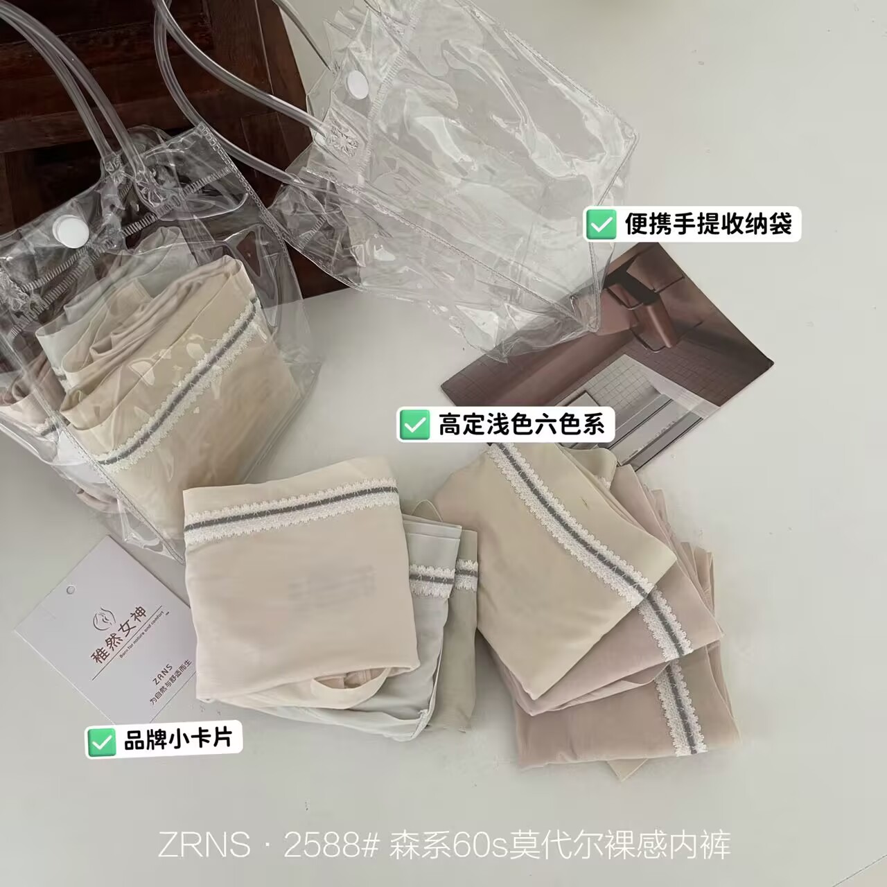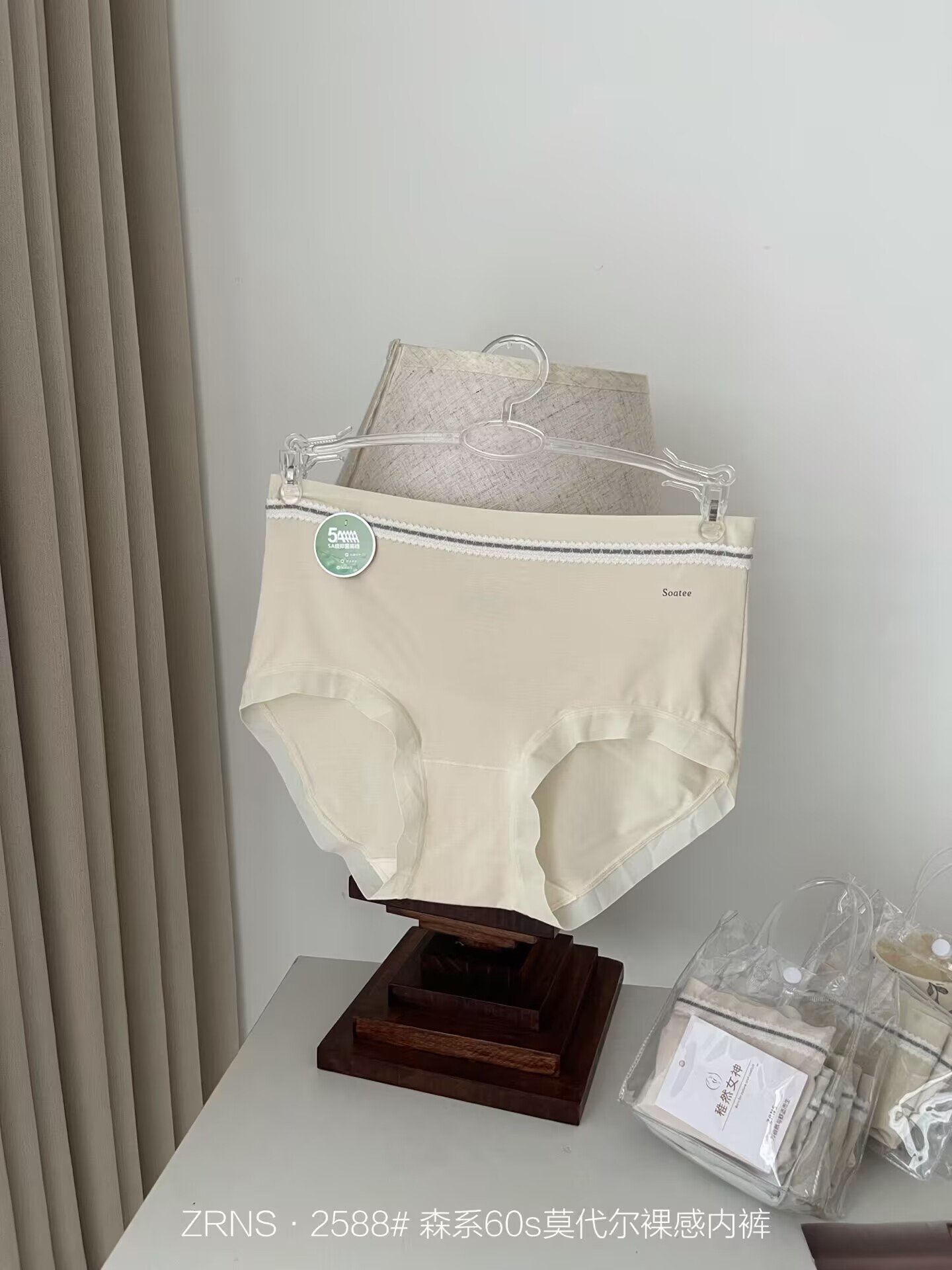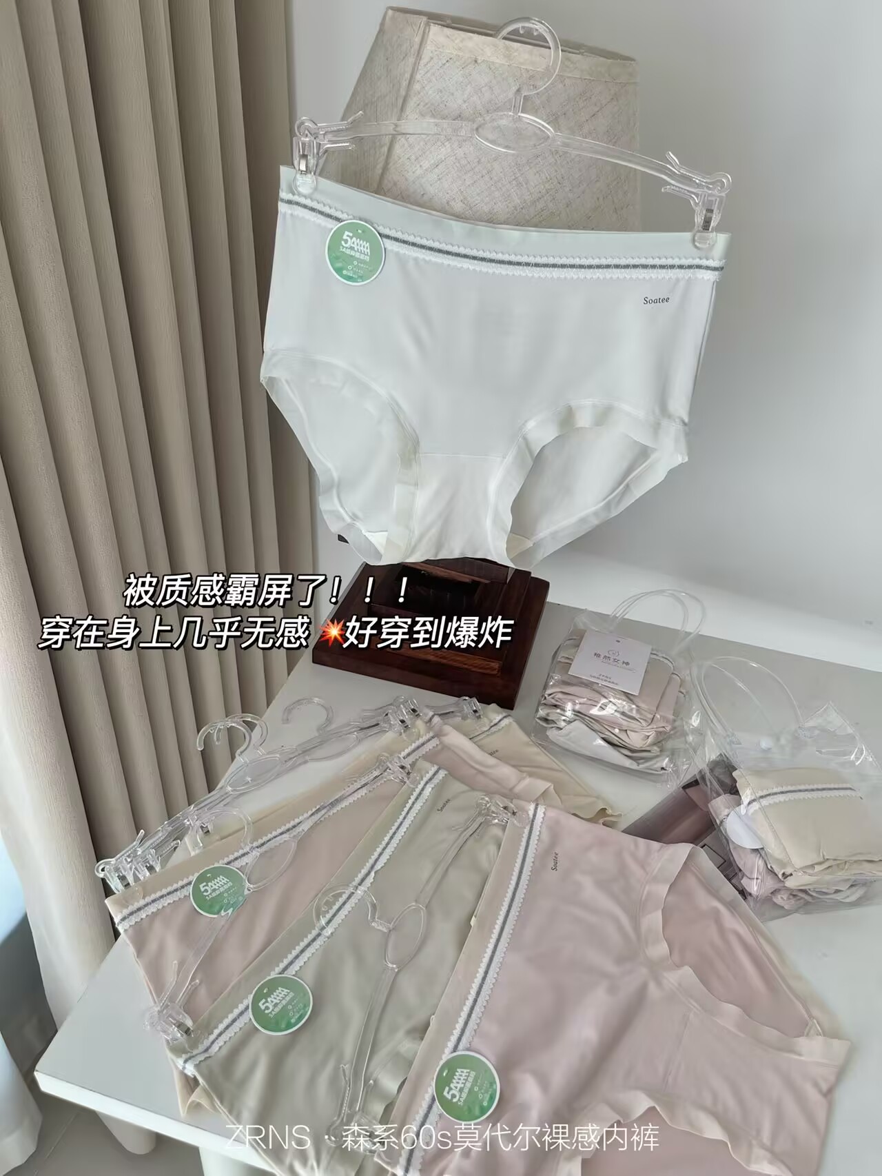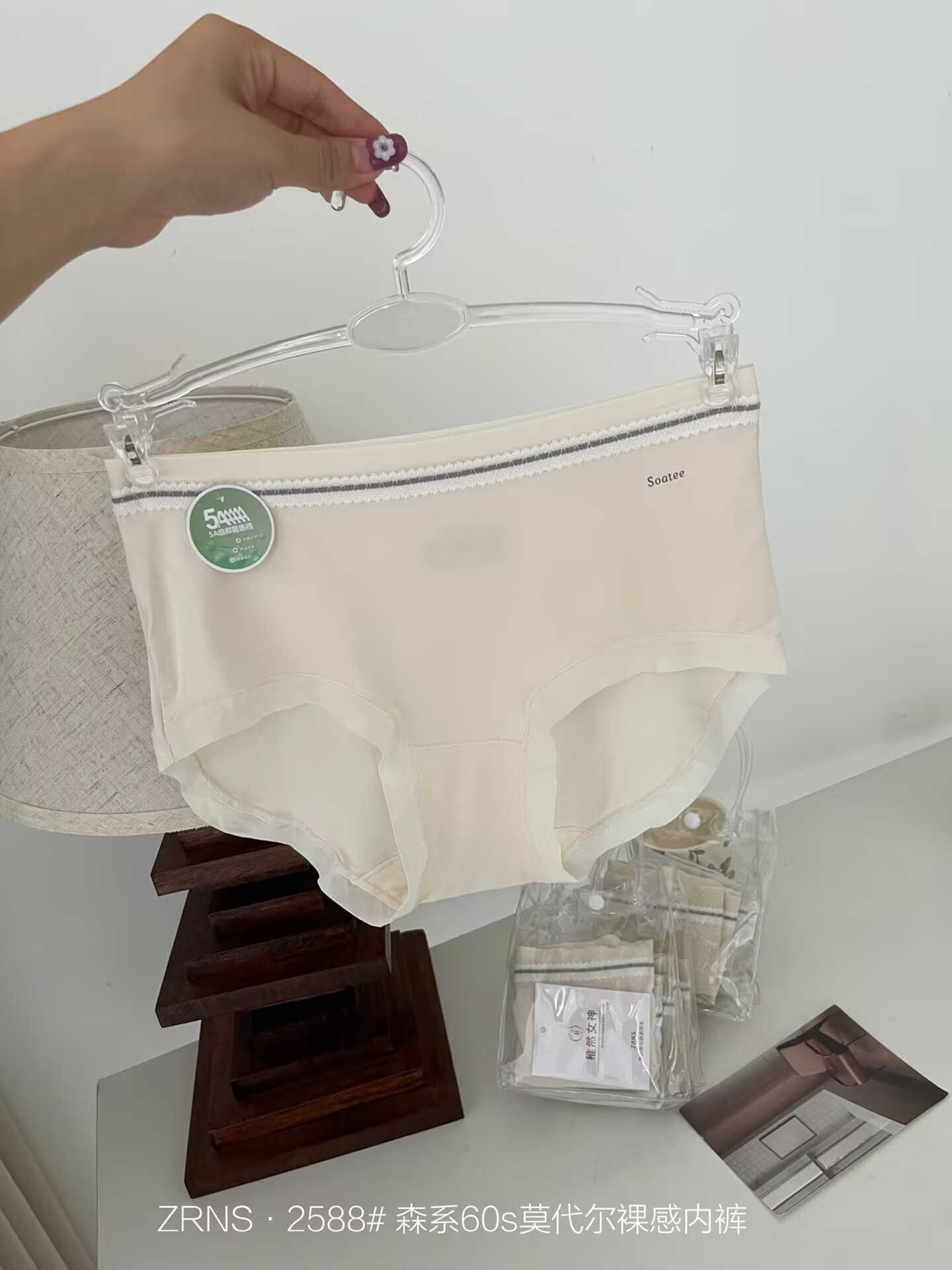 秋冬森系60S裸感莫代爾內褲女無痕中腰舒適包臀5A抗菌底檔三角褲