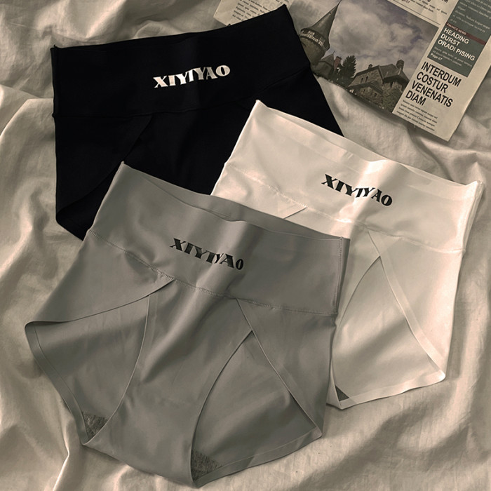 無痕高腰內褲女冰絲收腹純棉襠夏季超薄透氣大碼少女士三角黑白灰