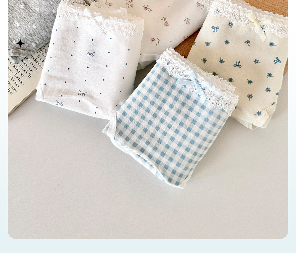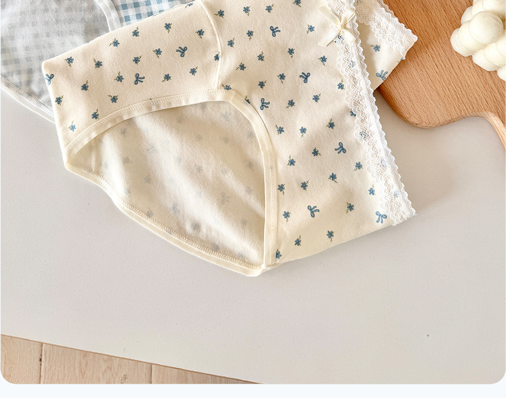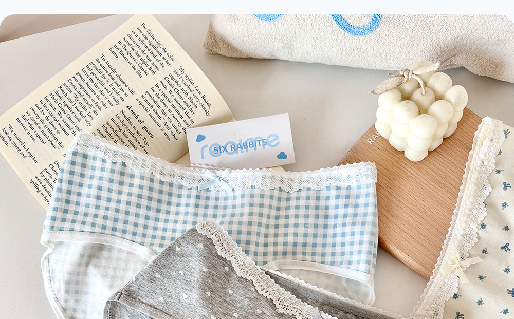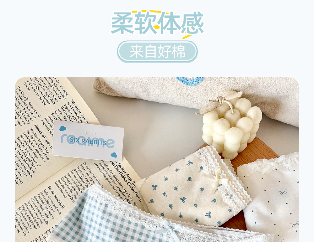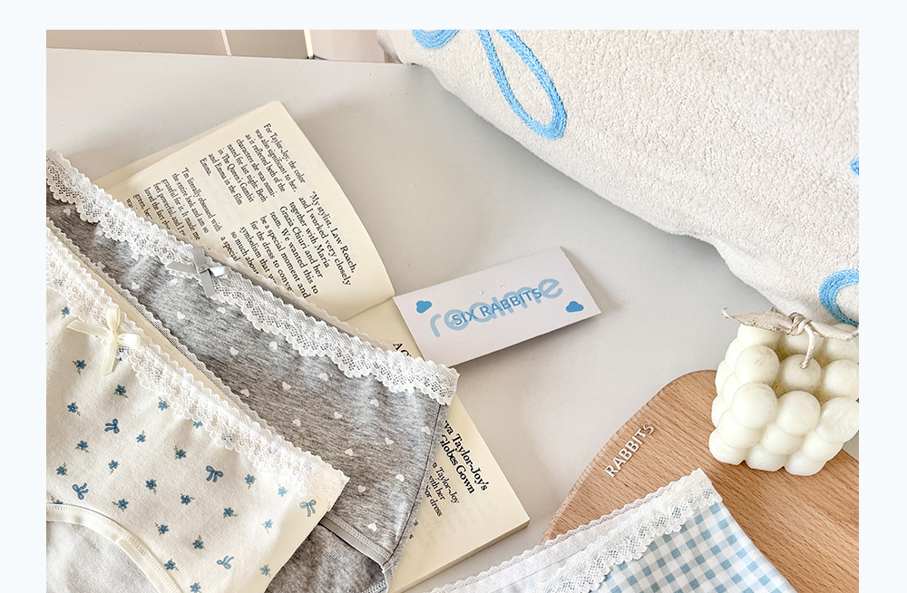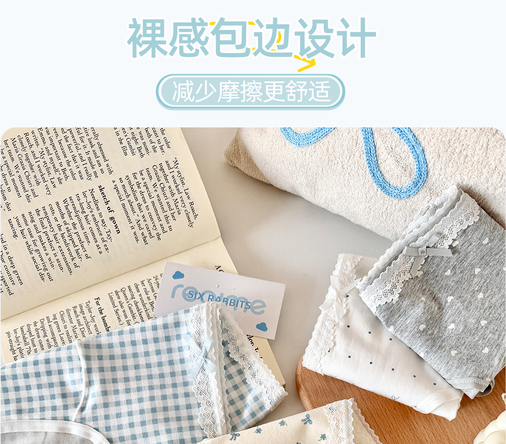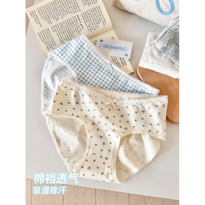 六衹兔子3條裝棉質內褲女純棉底襠中腰不夾臀短褲甜美蕾絲三角褲