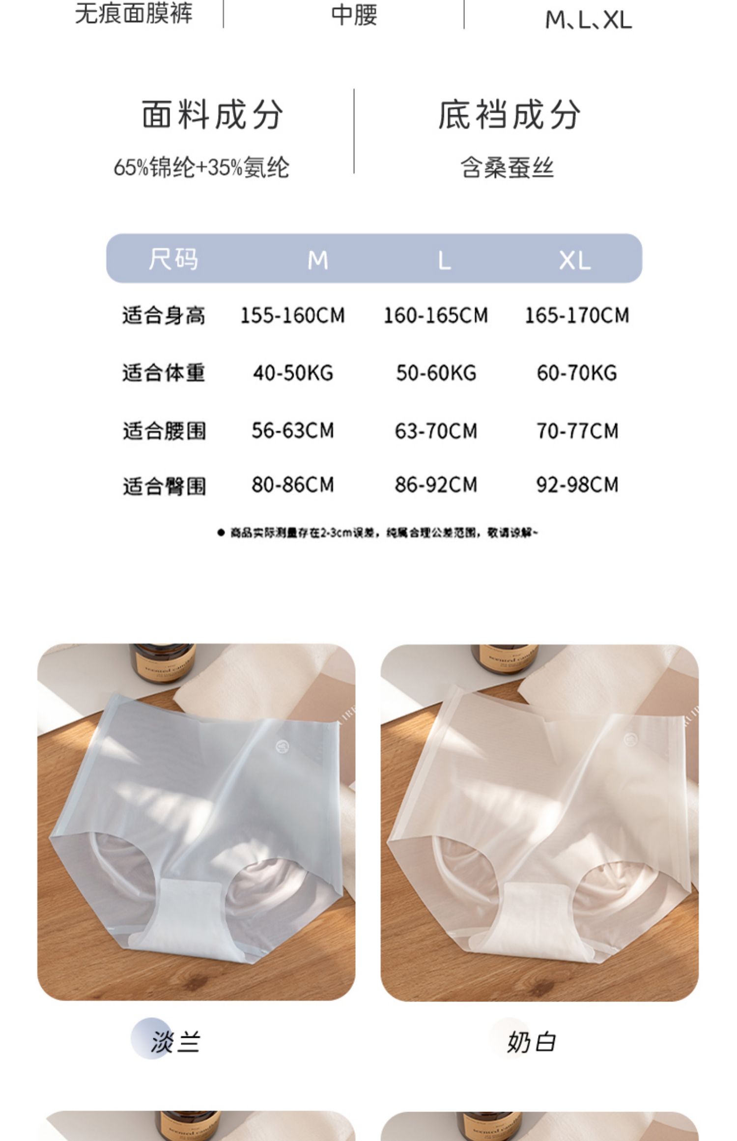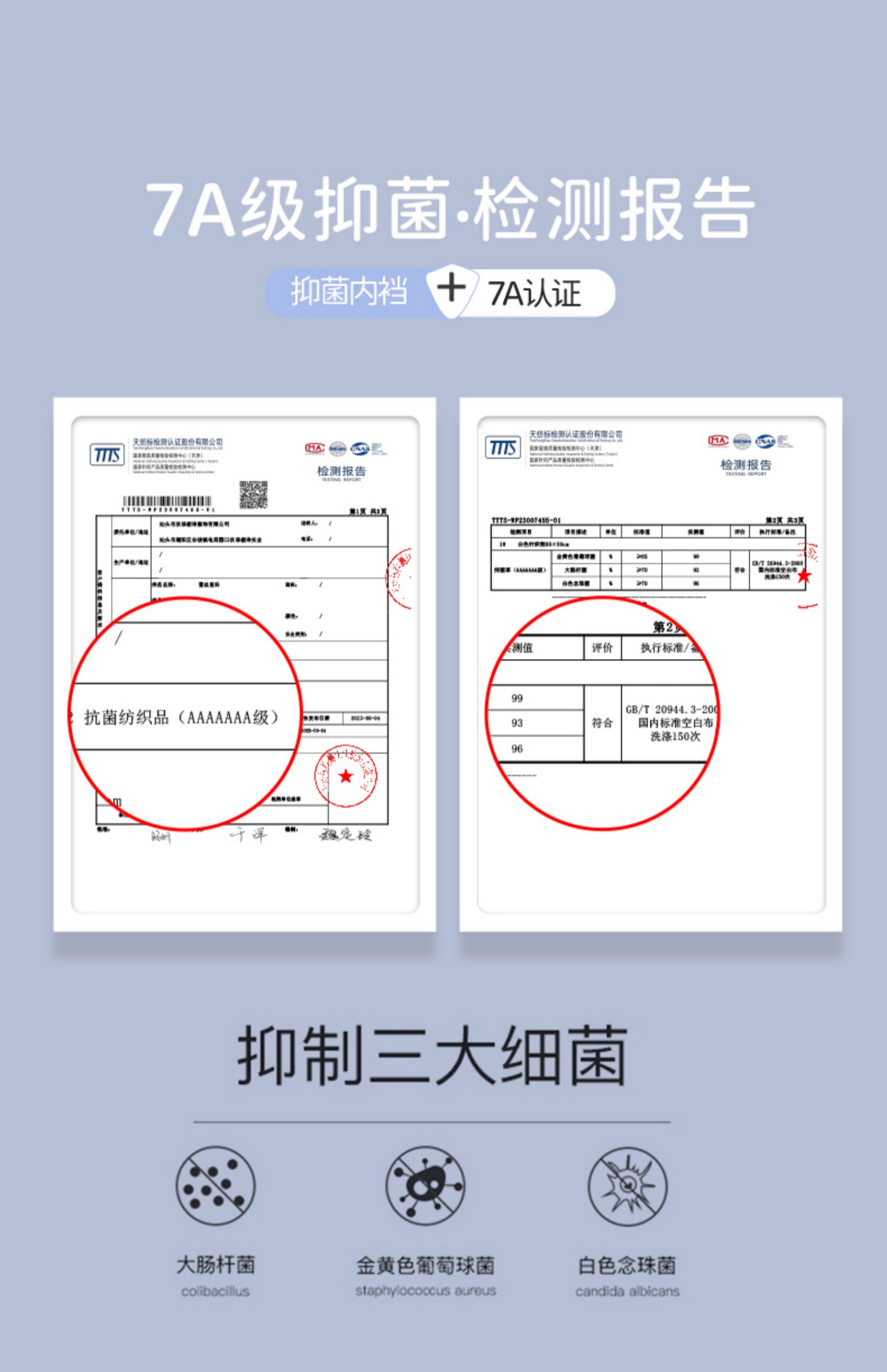 | 襠部材質成分 | 再生纖維素纖維80% 棉9% 桑蠶絲6% 聚氨酯彈性纖維(氨綸)5% |