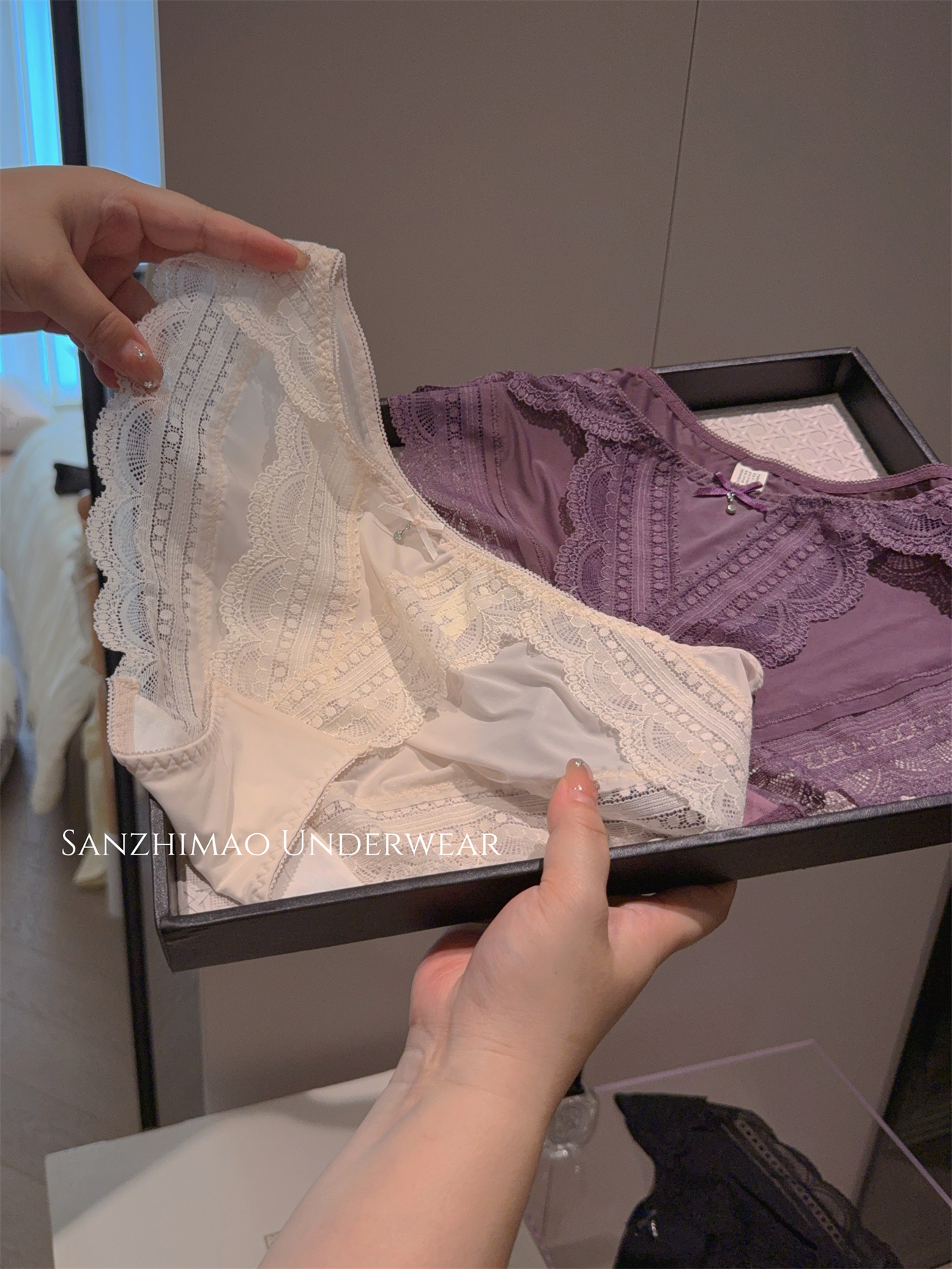 高開叉軟糯牛奶冰絲,2025新性感蕾絲內褲女士三角褲純欲女純棉襠