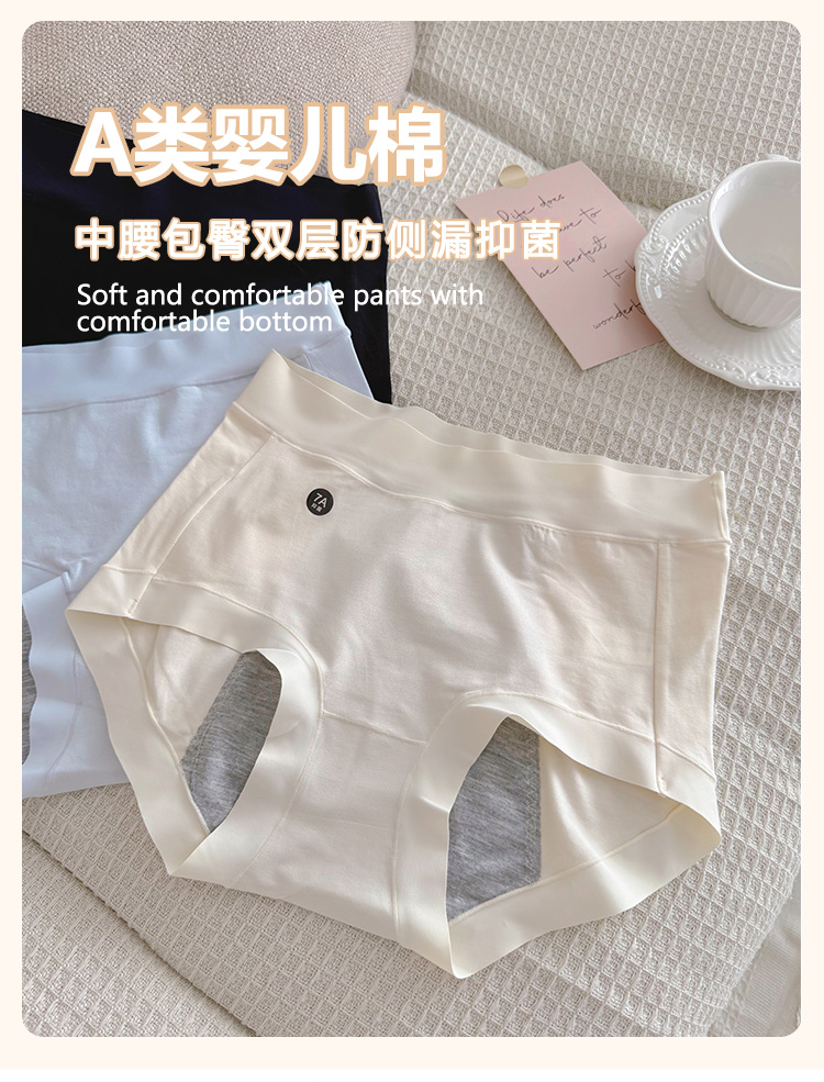 嬰兒棉生理褲純棉抑菌無痕姨媽褲防側漏安心褲中高腰包臀裸感內褲