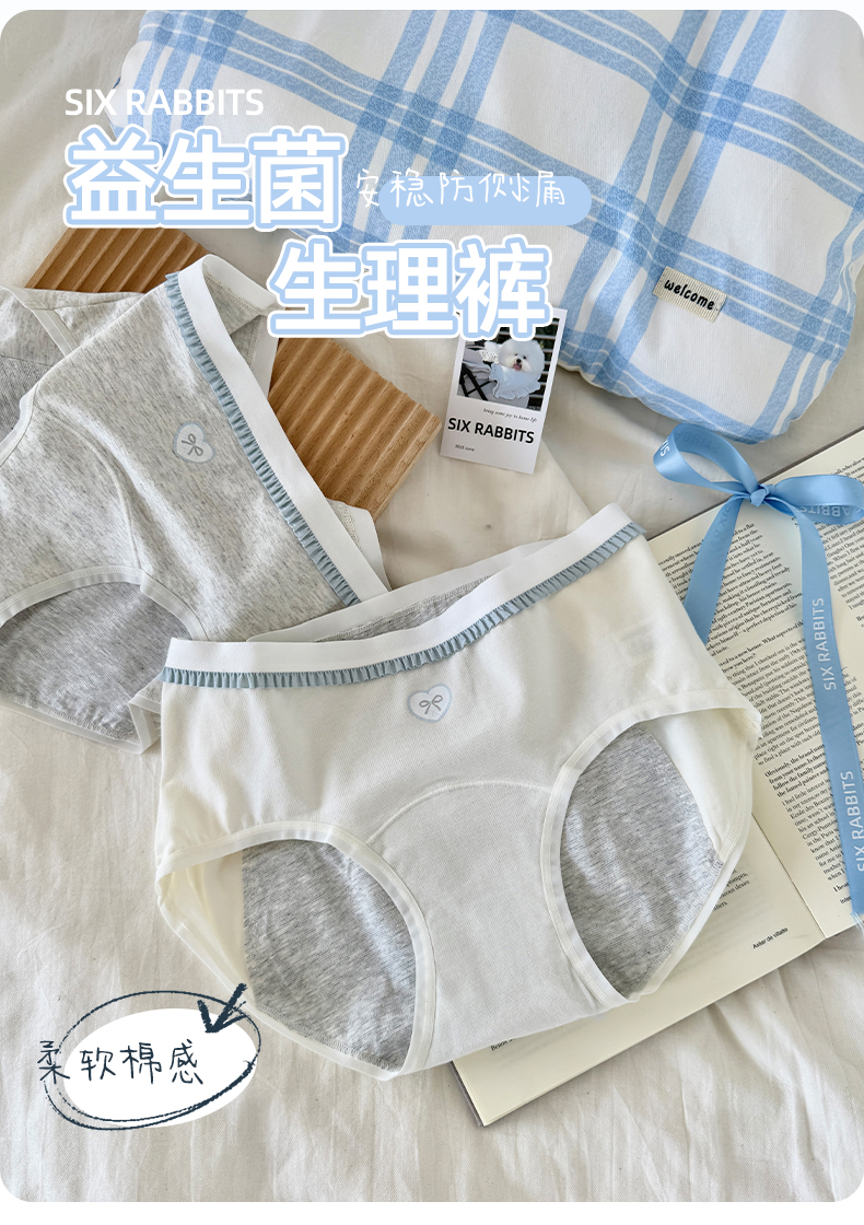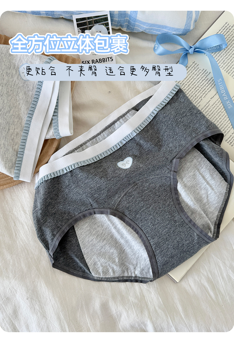 六衹兔子內褲女生理褲莫代爾睡眠褲純棉底襠舒適吸汗中腰三角褲女