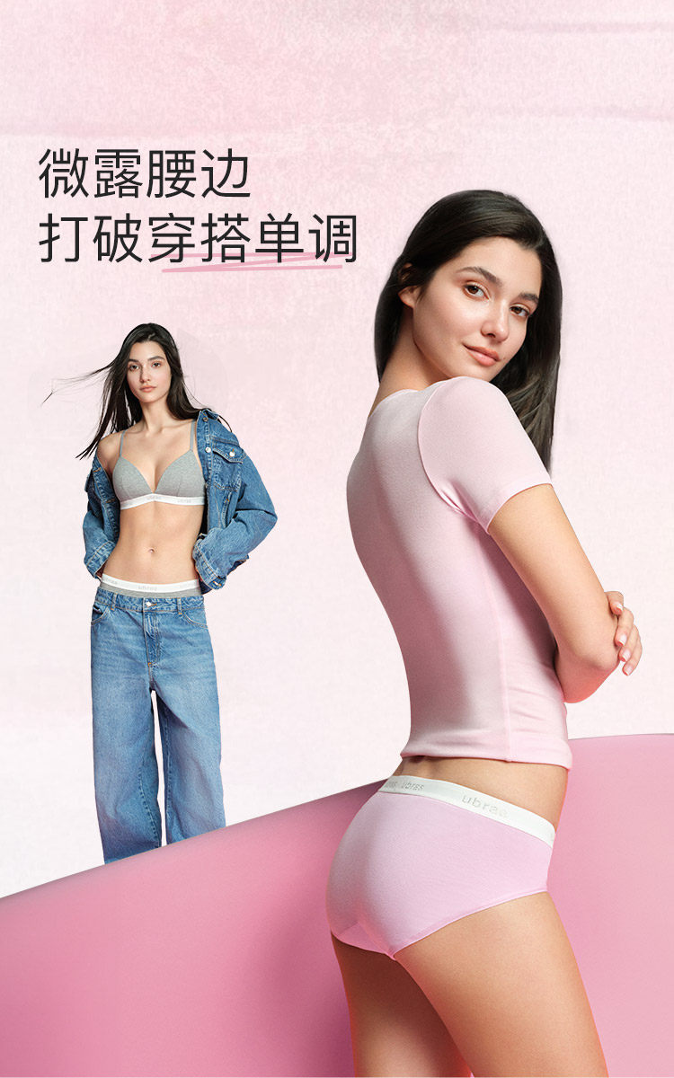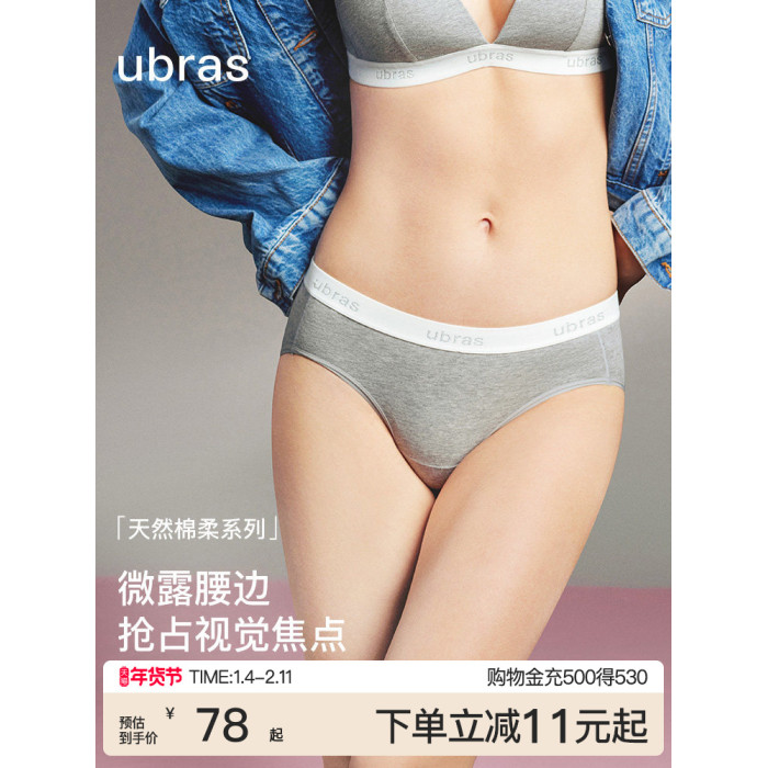 ubras外露性感低腰純棉內褲女時尚運動字母織帶7A抗菌襠短褲