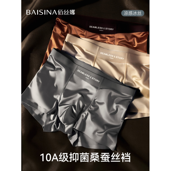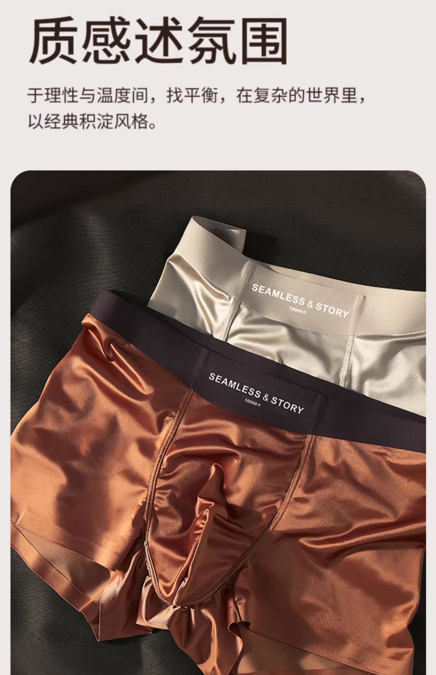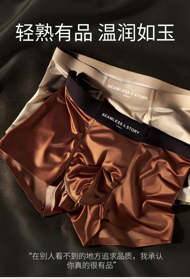 無痕緞面男士內褲冰絲男生夏薄透氣桑蠶絲抗菌四角平角短褲2025新
