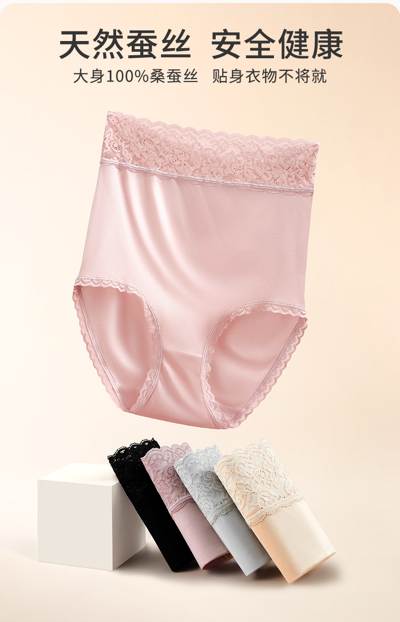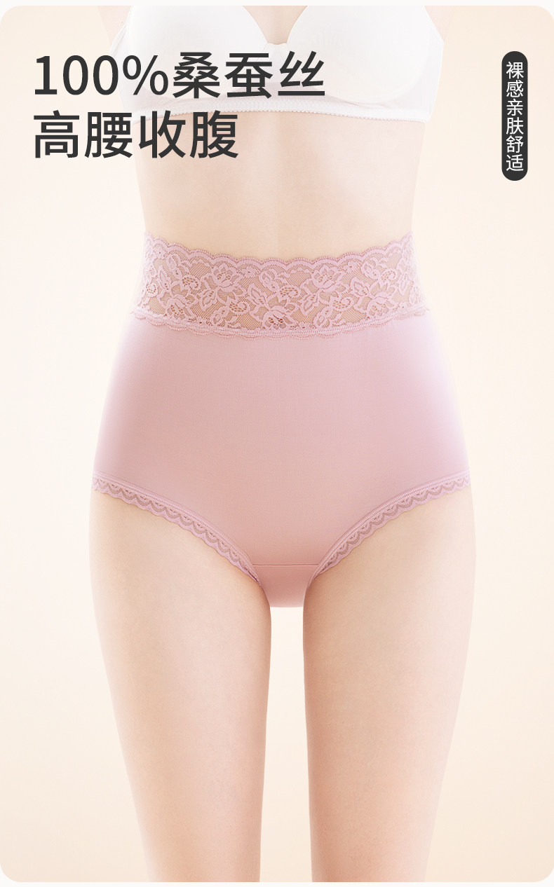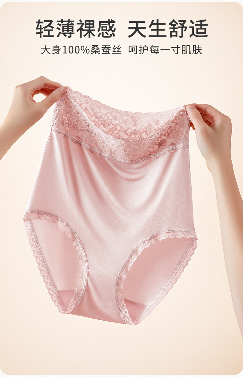 100%真絲內褲女士高腰收腹桑蠶絲抗菌夏季薄款大碼無痕三角褲短褲