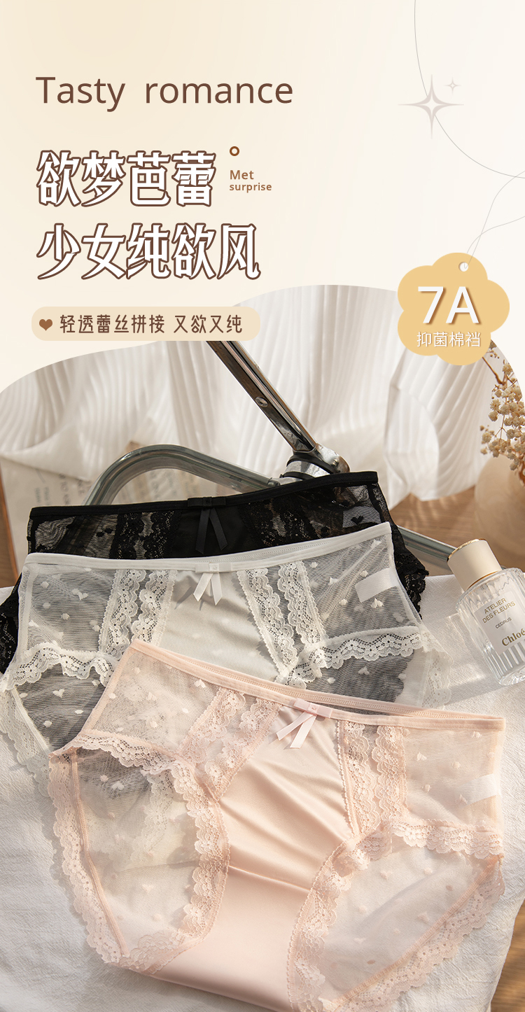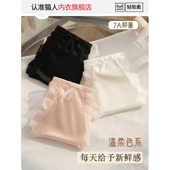 貓人內褲女士蕾絲純欲2025新款性感中腰不夾臀無痕女生三角短褲頭