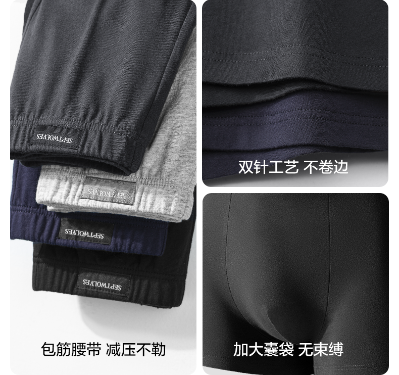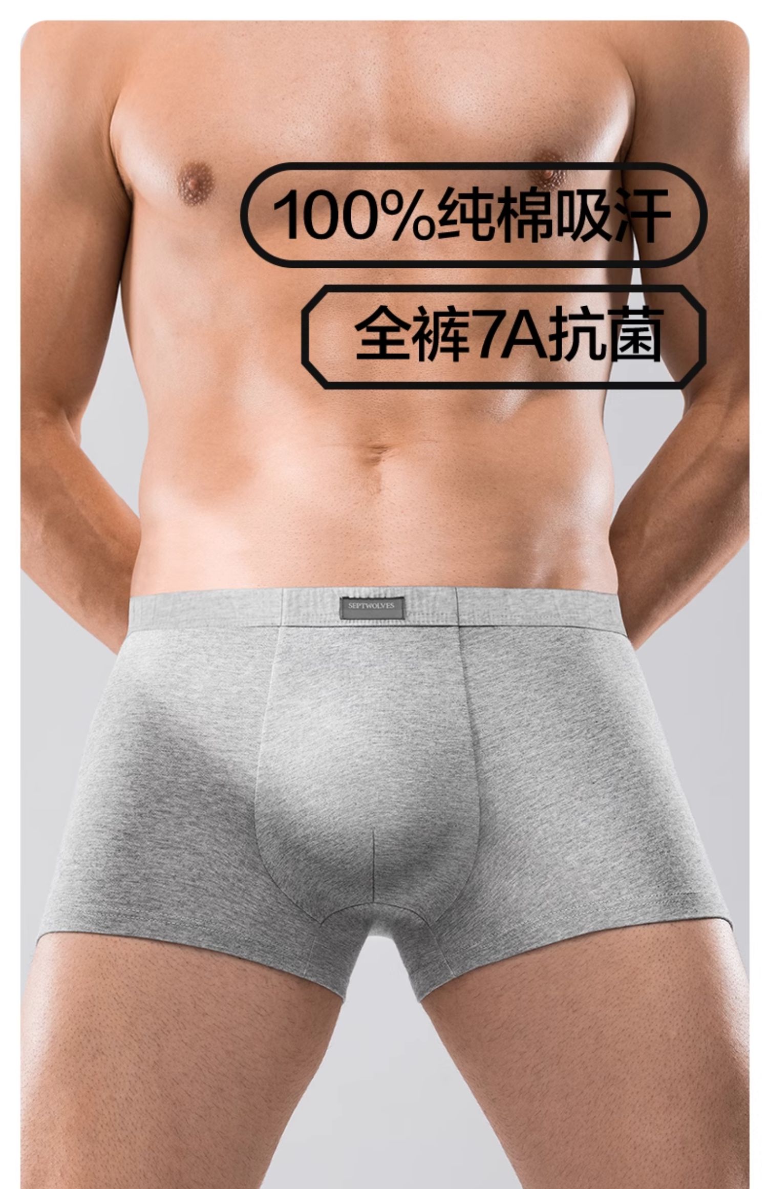 七匹狼男士內褲純棉男生四角褲100%全棉加肥加大碼平角短褲頭男款