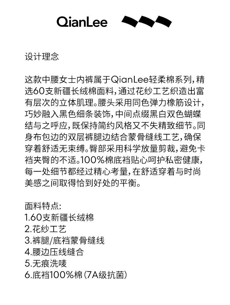 QianLee新疆長絨棉內褲女純棉全棉襠抗菌中腰女生短褲舒適少女式