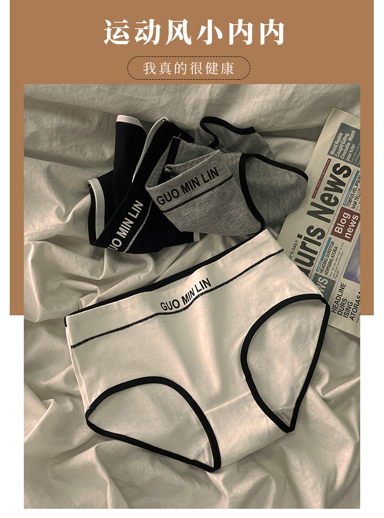 健丹鳥純棉內褲女士抗菌襠部透氣中腰性感運動風少女甜酷風三角褲