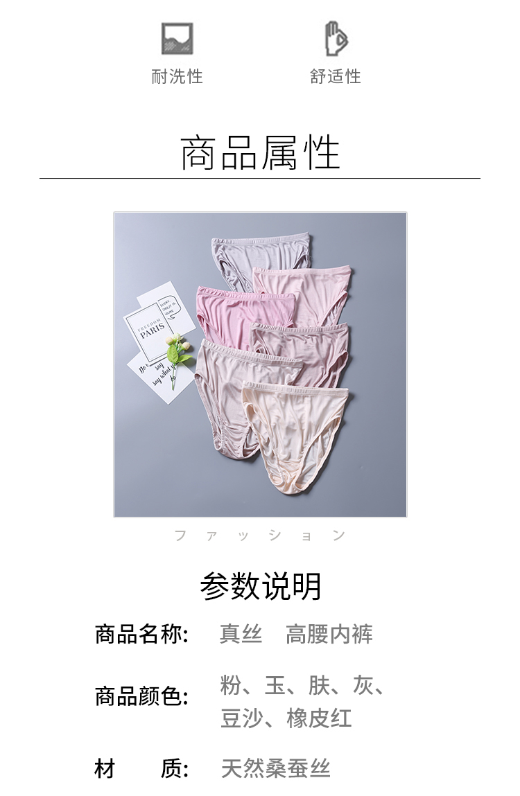 天然桑蠶絲女士內褲 真絲針織三角褲 中高腰簡約基本款 透氣舒適