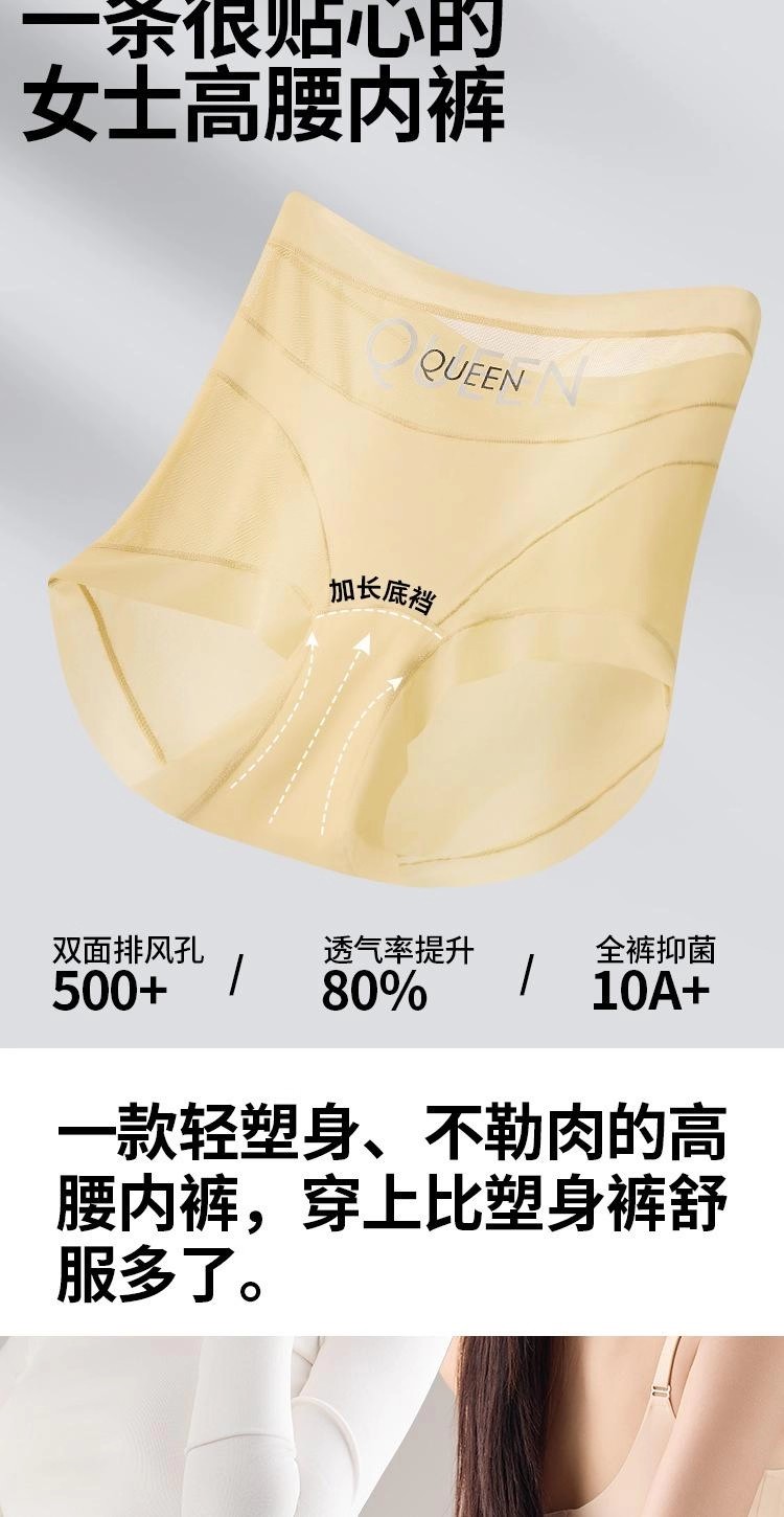 3條裝內褲女10A抗菌桑蠶絲襠內褲女無痕透氣塑身舒適平角褲女