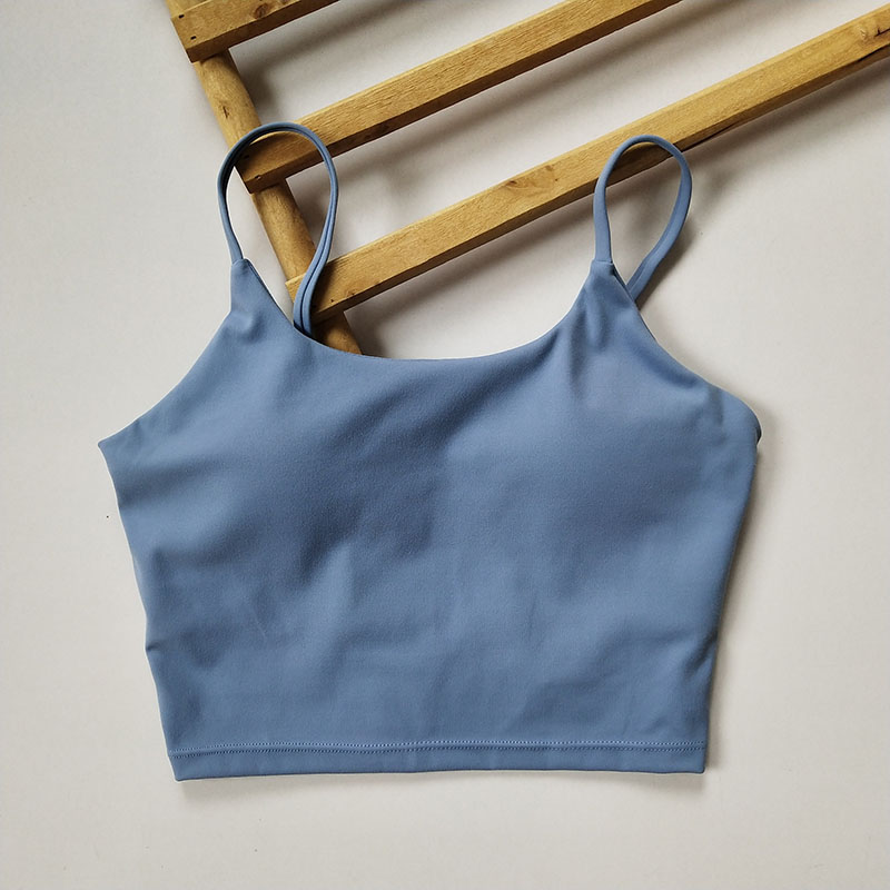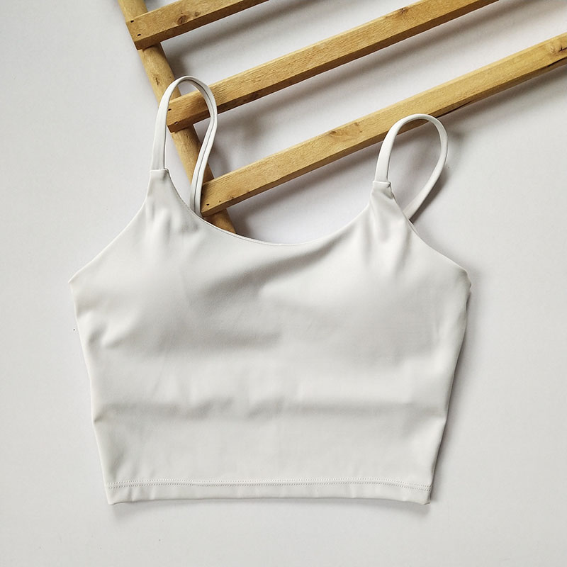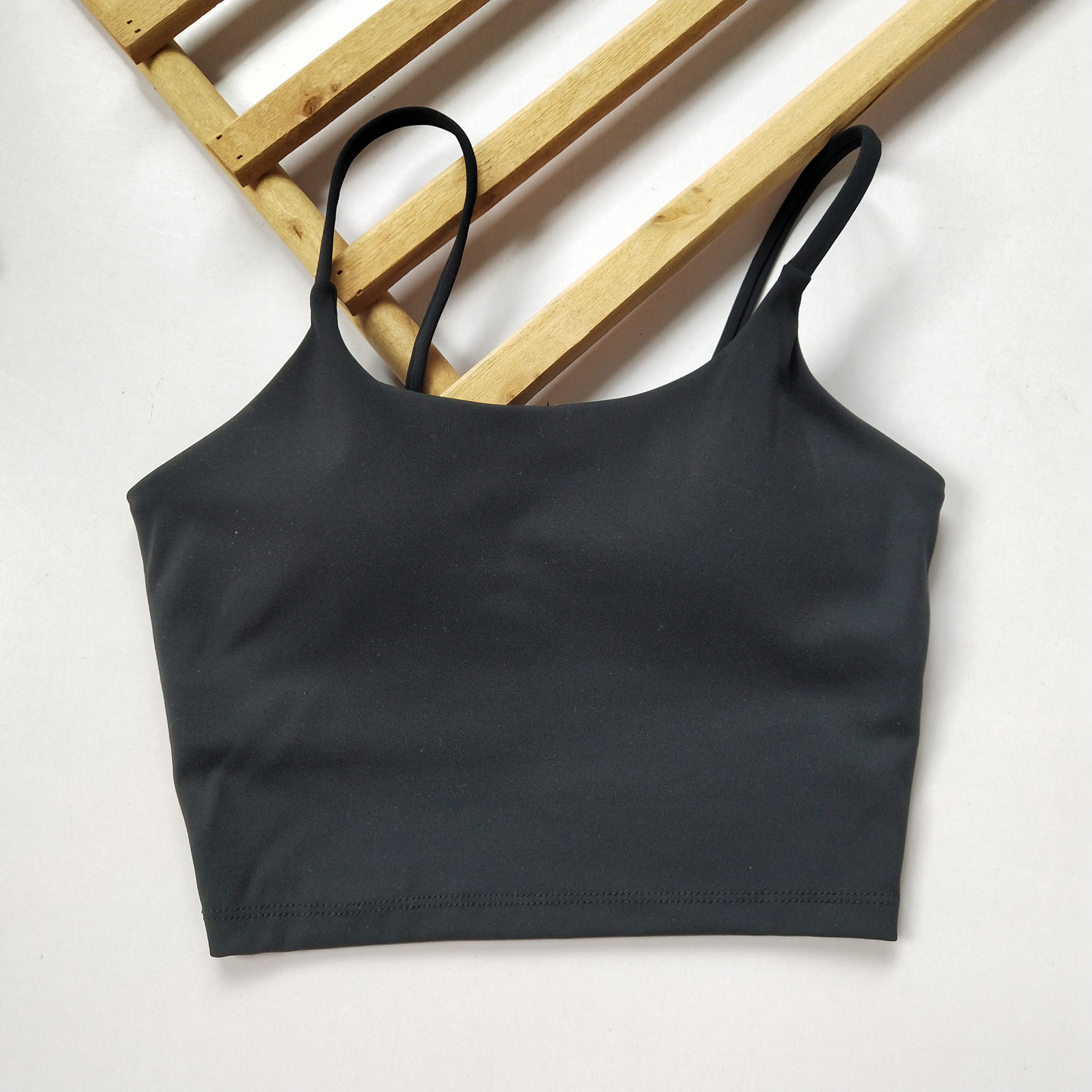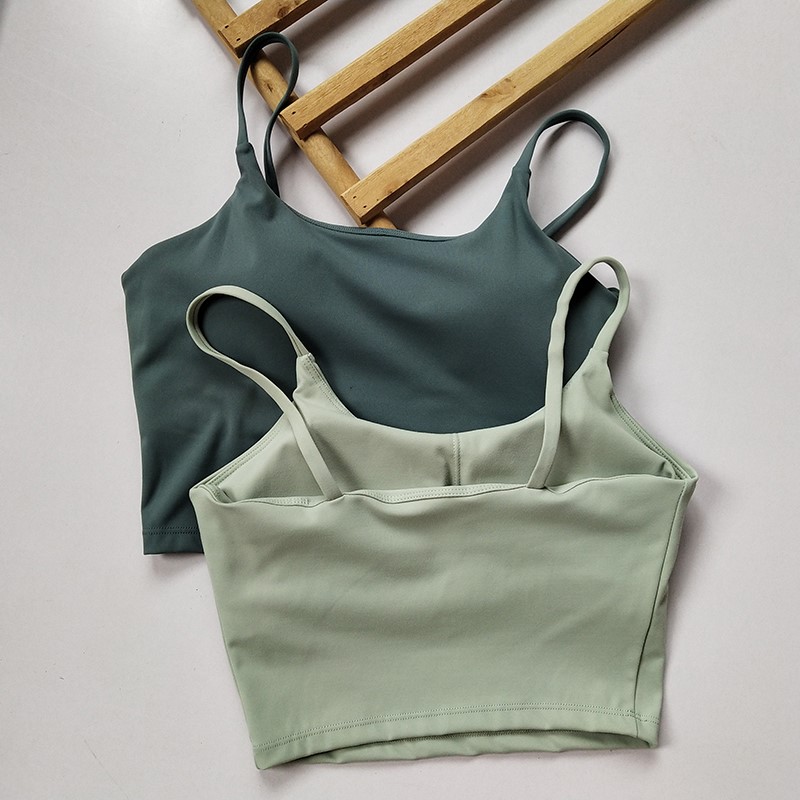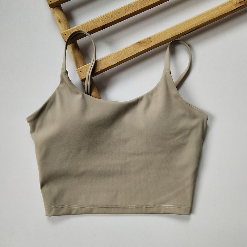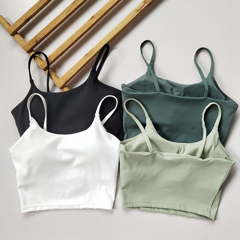 裸感親膚瑜珈背心女帶胸墊速乾細帶美背運動文胸吊帶緊身健身服