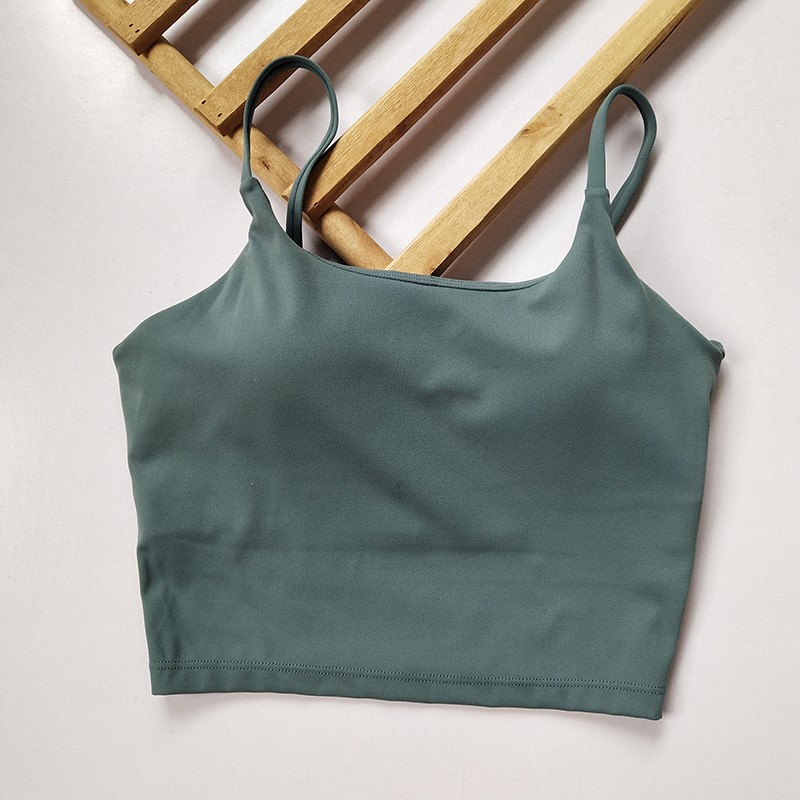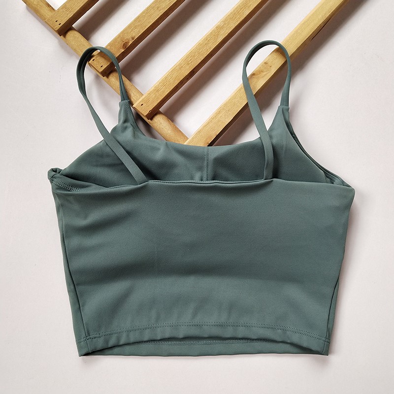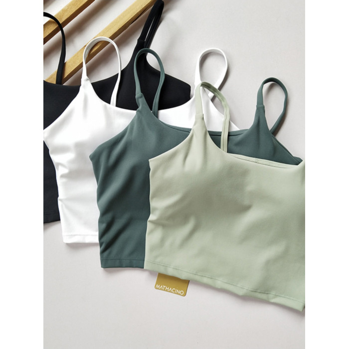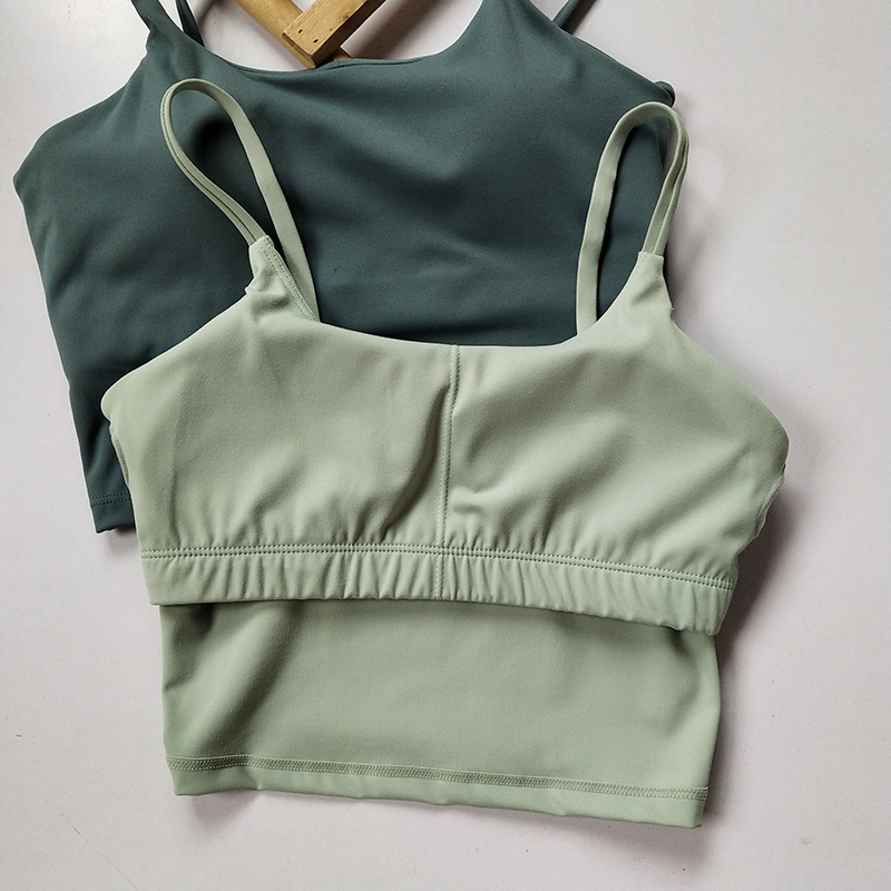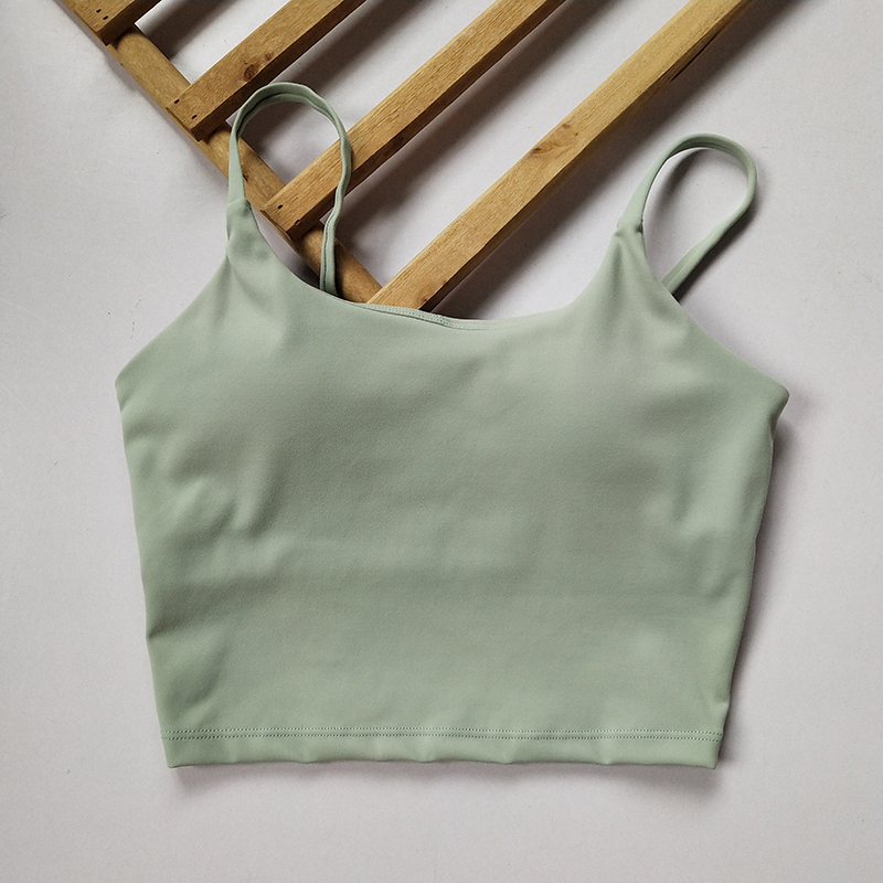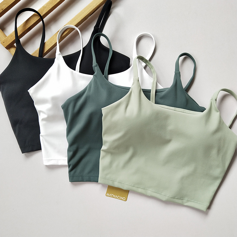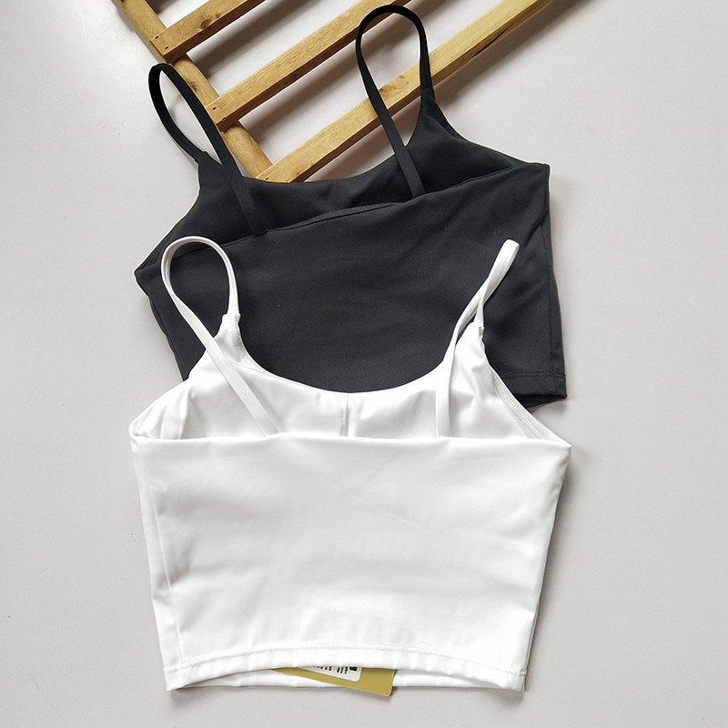 裸感親膚瑜珈背心女帶胸墊速乾細帶美背運動文胸吊帶緊身健身服