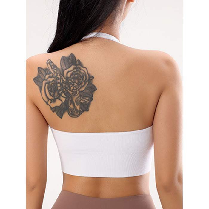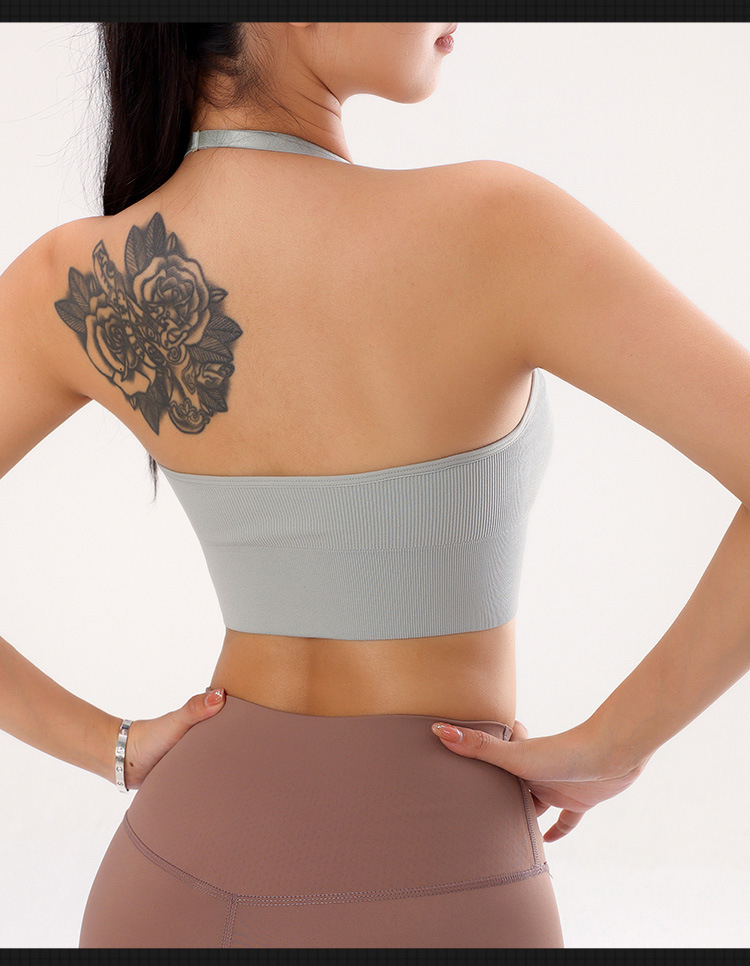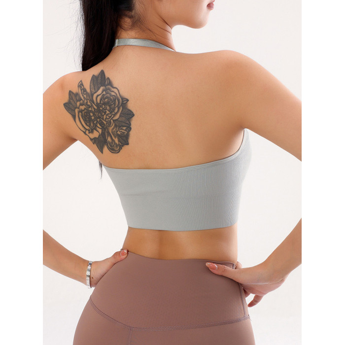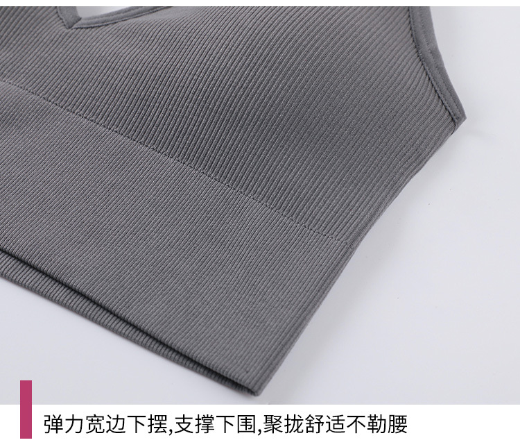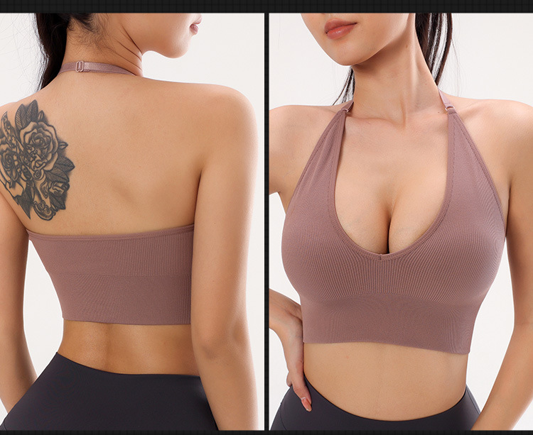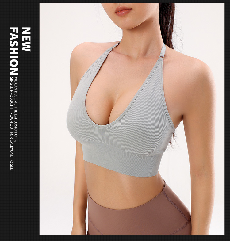 掛脖深V三角杯無痕歐美健身文胸可調節肩帶美背跑步瑜珈打底背心