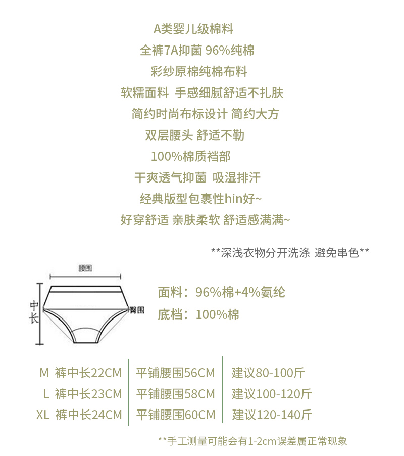 彩紗原棉A類棉~7A抑菌內褲女生純棉中腰簡約包臀2025秋新款三角褲