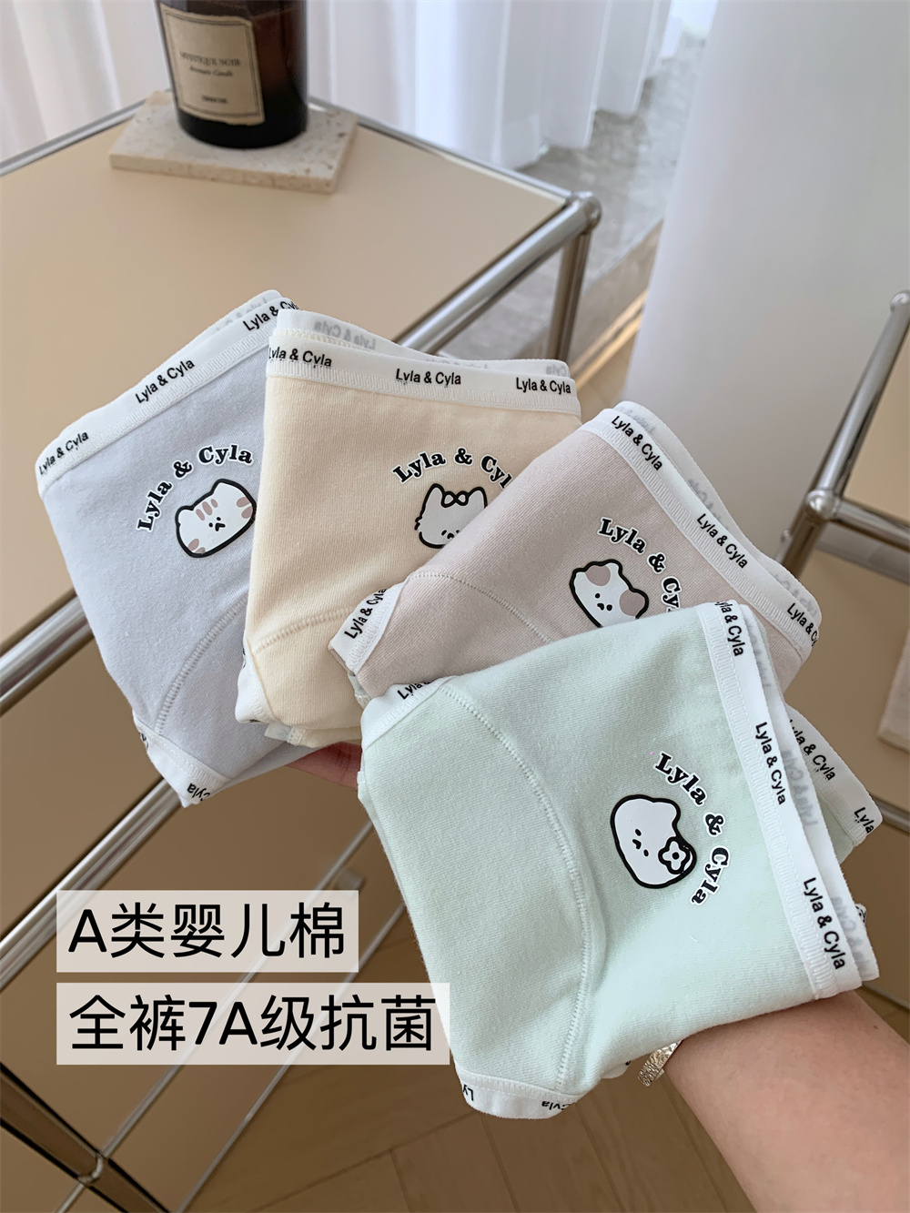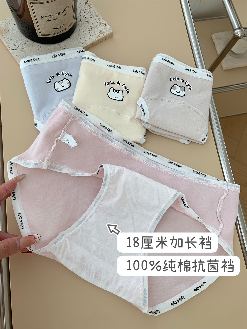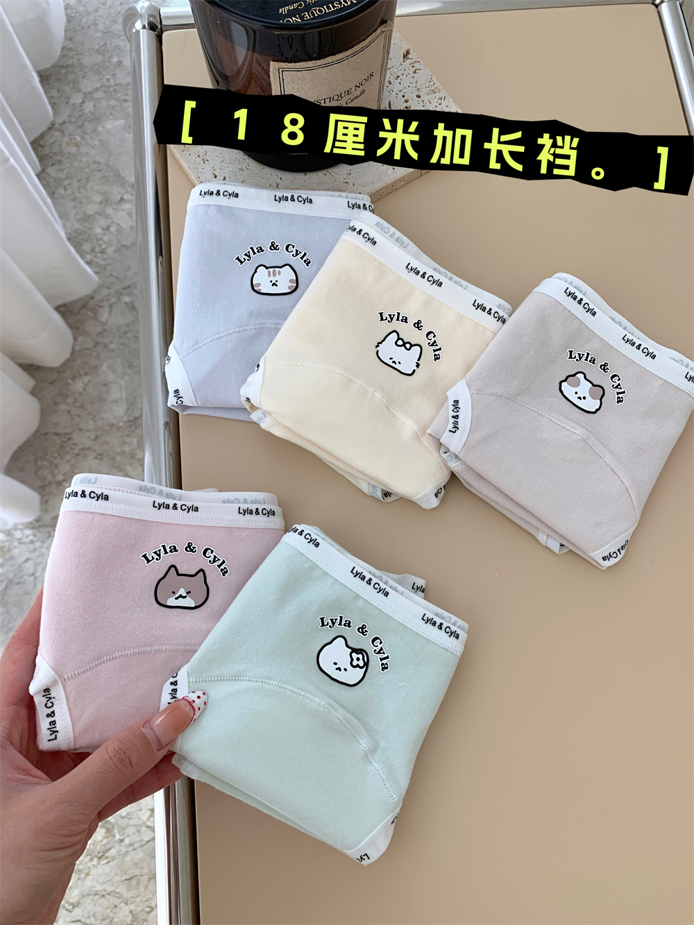 18公分加長襠7A類嬰兒棉內褲奶油小貓女中腰抗菌襠女生可愛三角褲