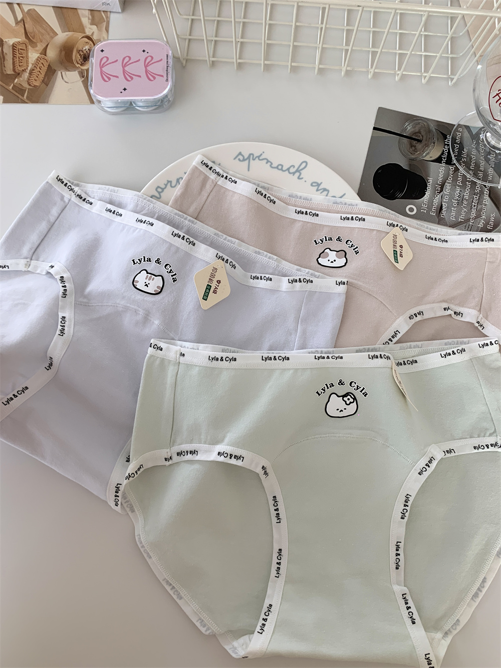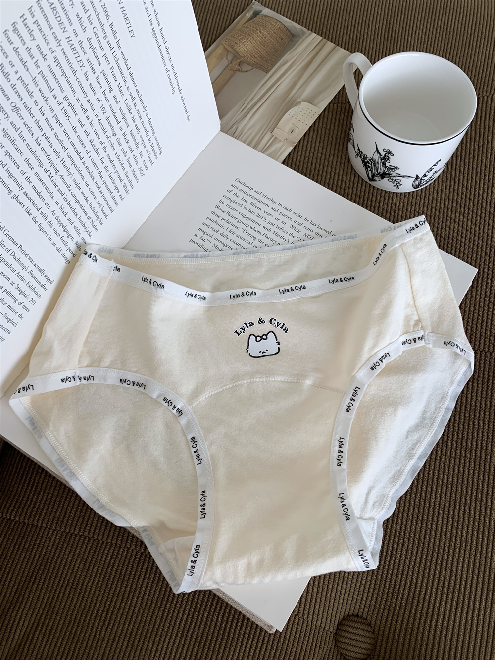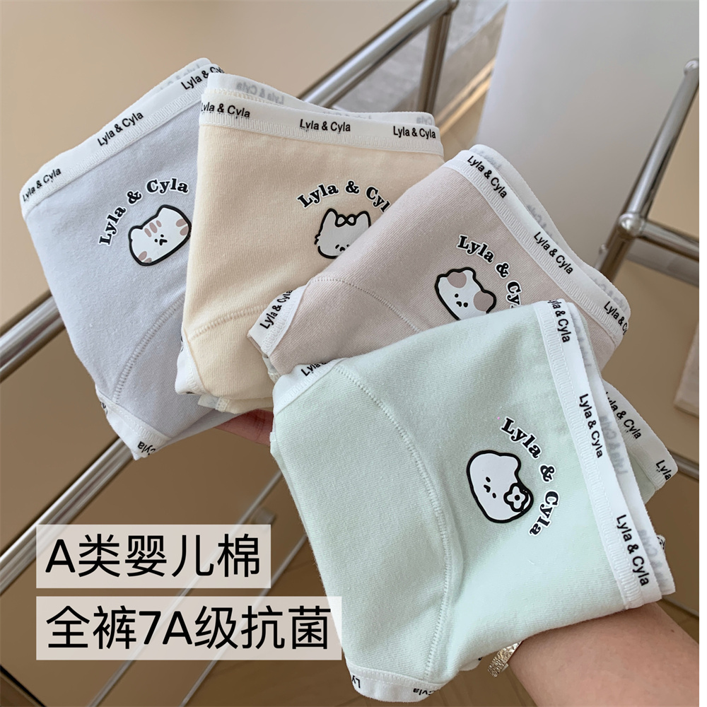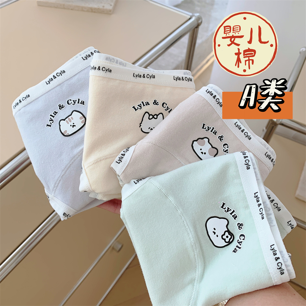 18公分加長襠7A類嬰兒棉內褲奶油小貓女中腰抗菌襠女生可愛三角褲