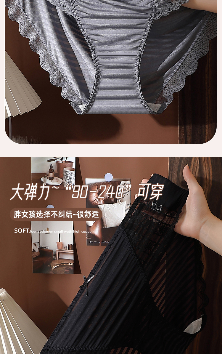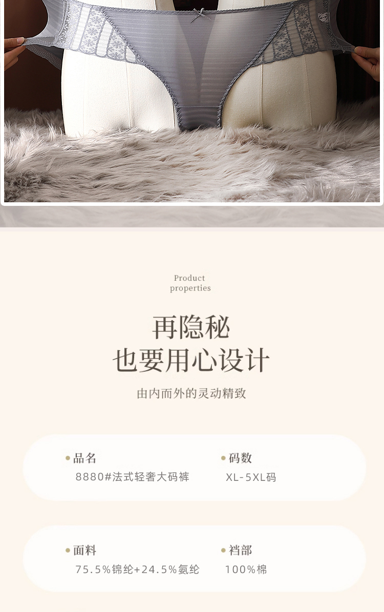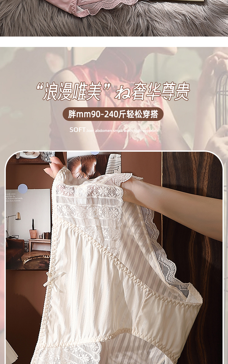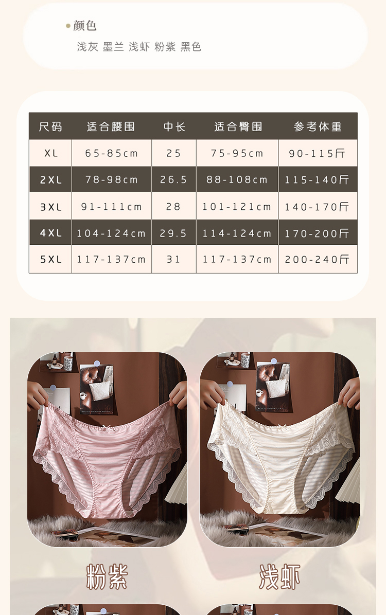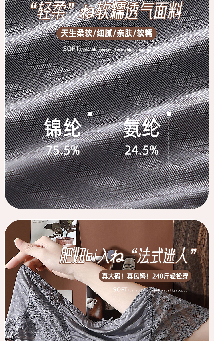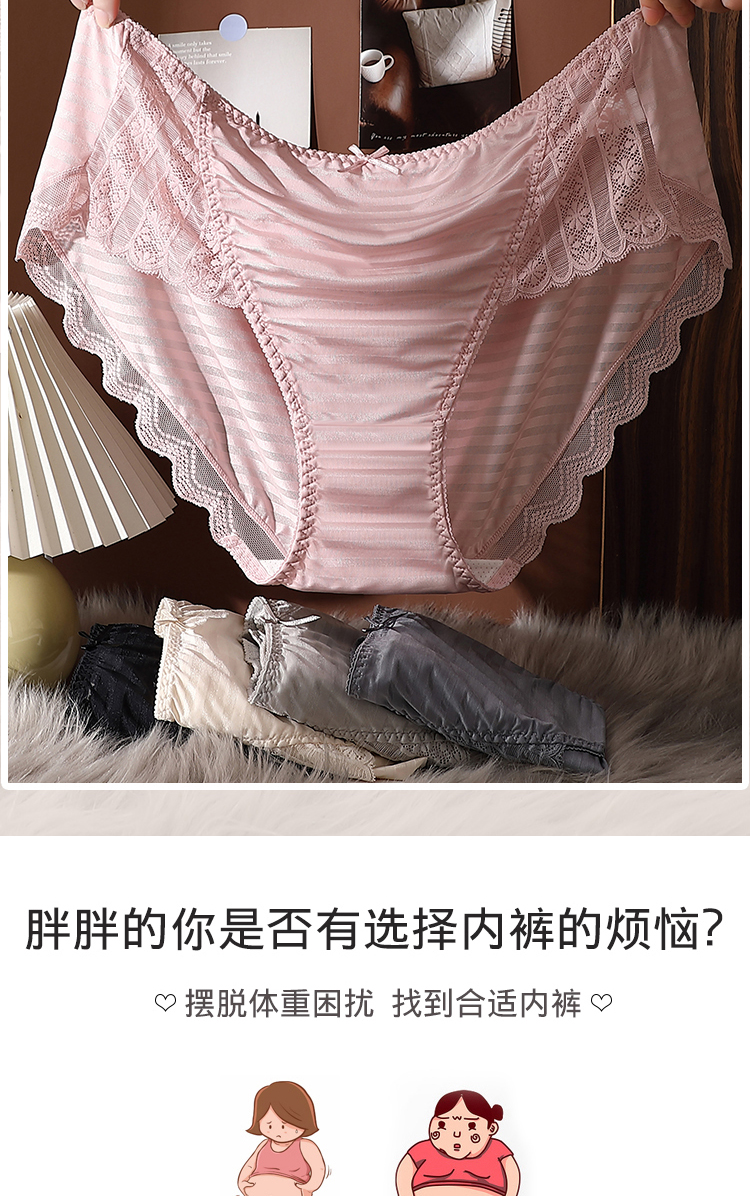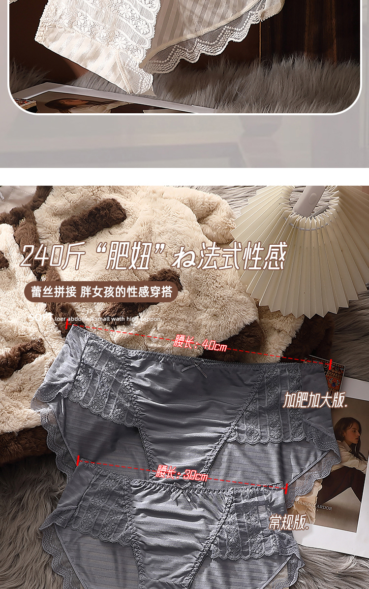 法式輕奢大碼內褲性感蕾絲拼接中腰提臀包臀加肥加大240斤三角褲