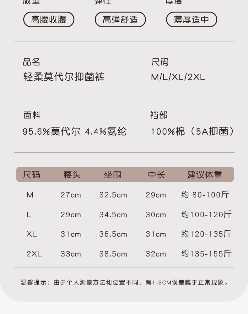 材質成分 莫代爾纖維(莫代爾)95.6% 聚氨酯彈性纖維(氨綸)4.4%