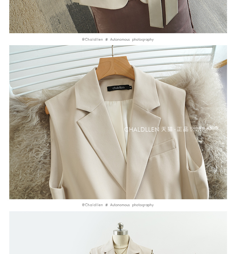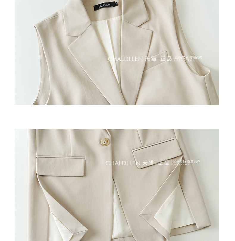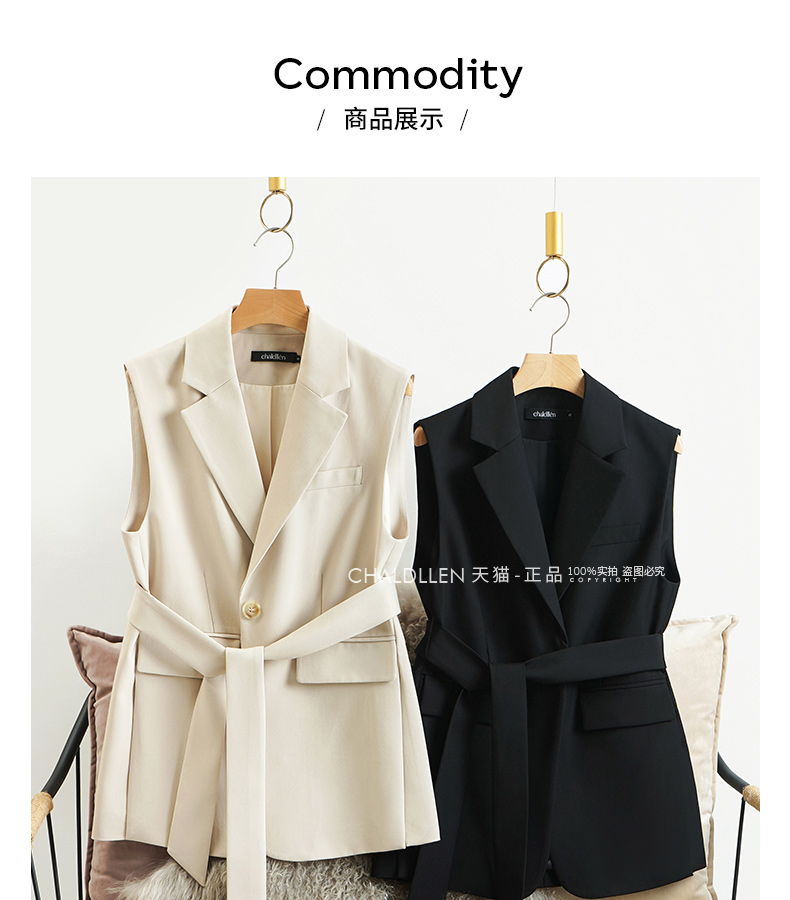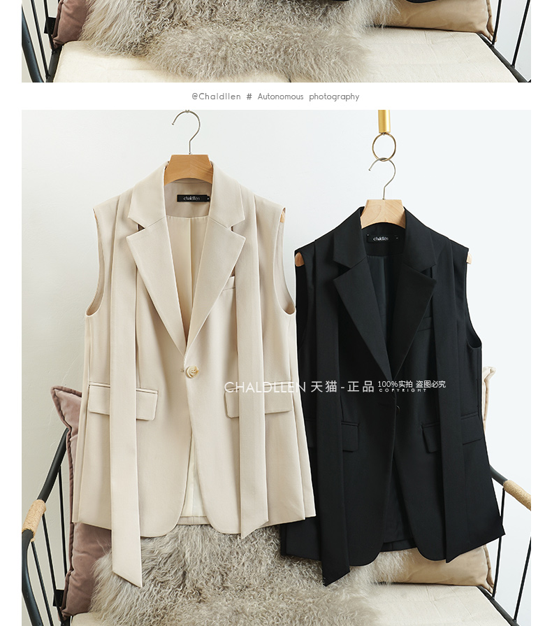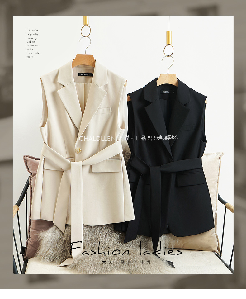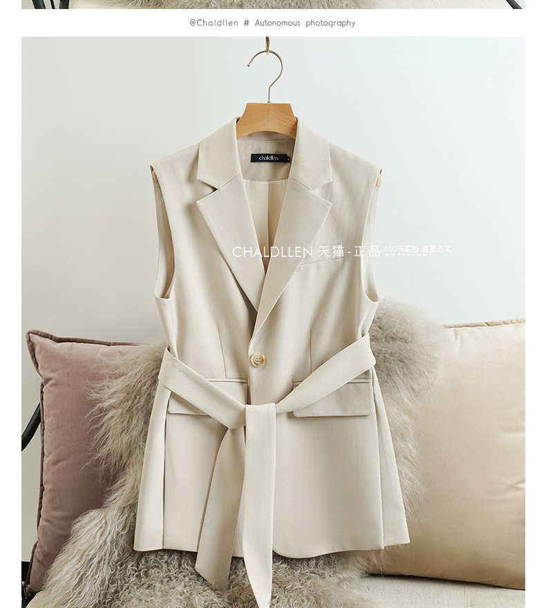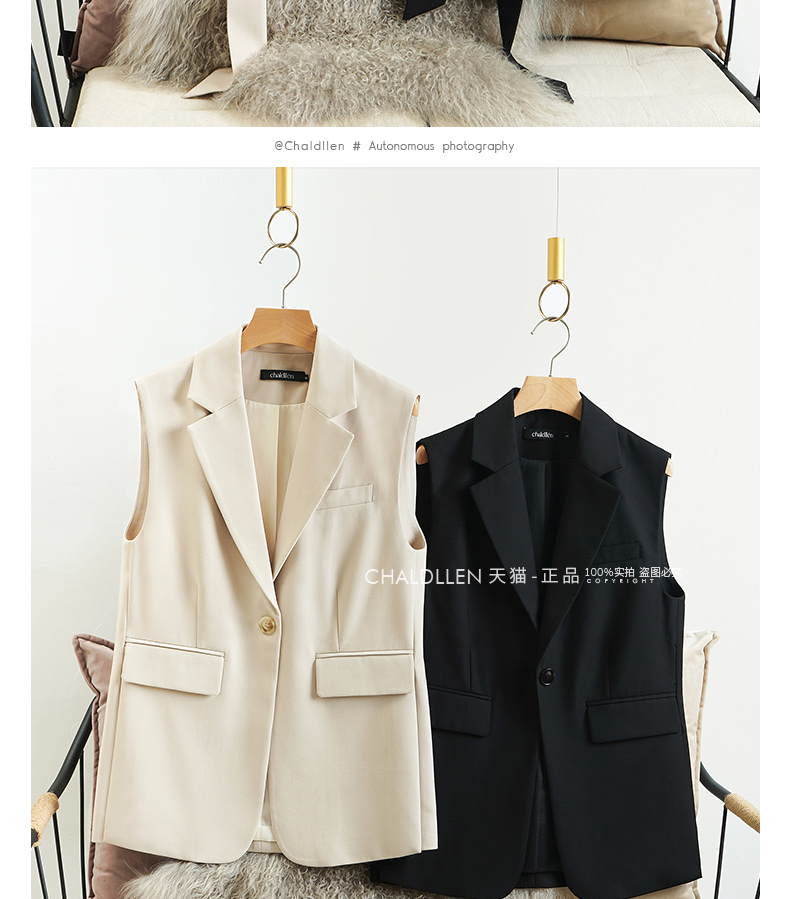 VastGlad 時尚西裝馬甲女新款春秋英倫休閒韓版無袖外搭米色885