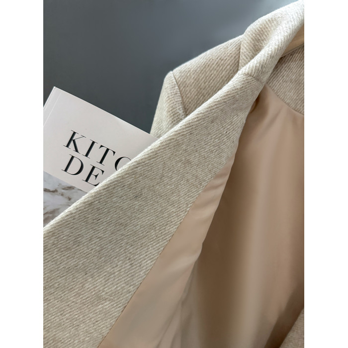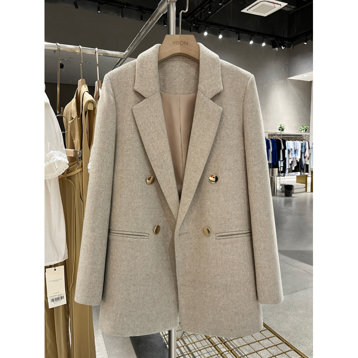 米灰色金屬釦毛呢小西裝外套女2025新款冬季高級感英倫風百搭西服