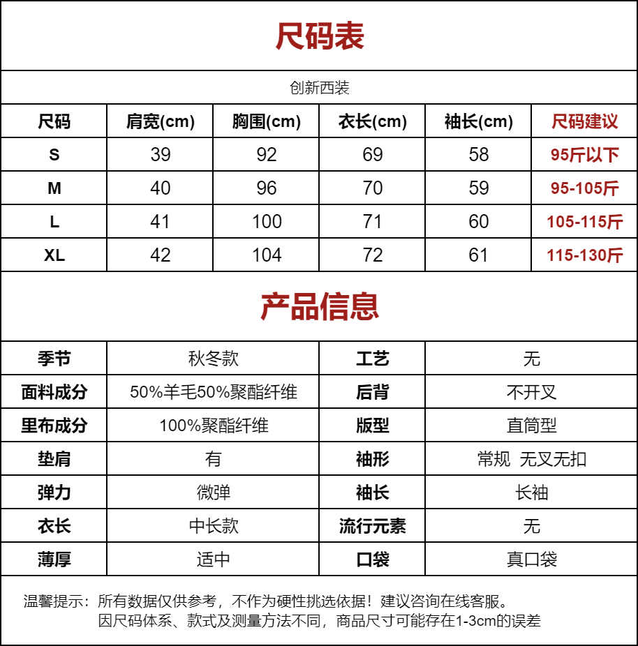 | 領型 | 西裝領 |